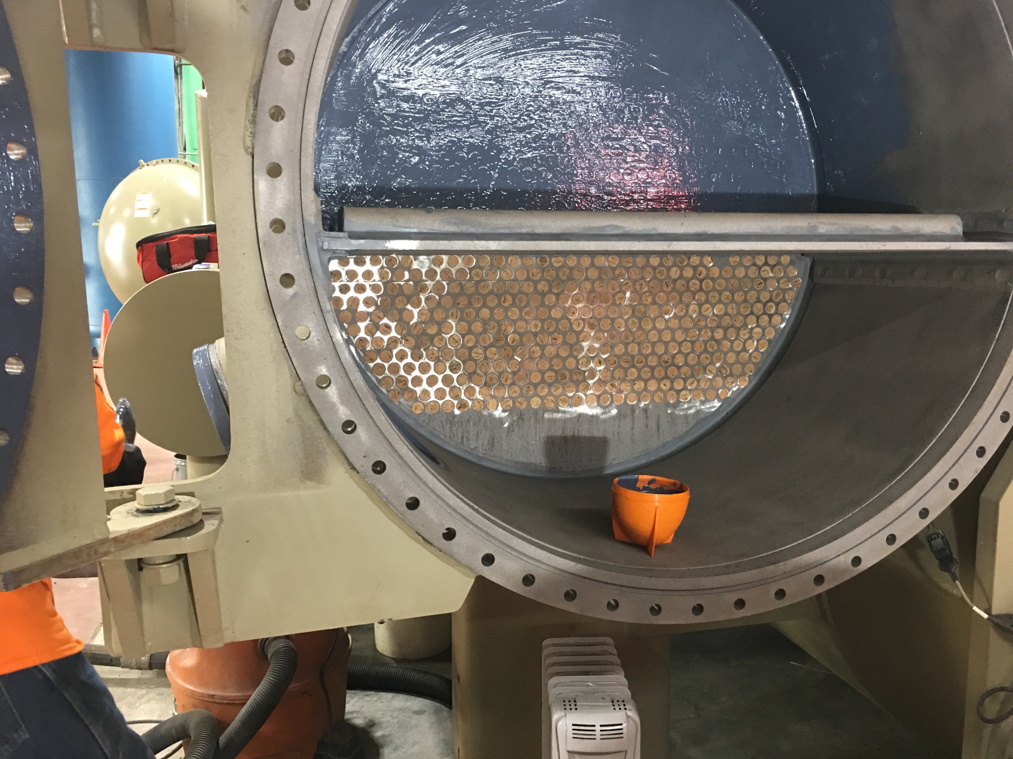 冷却器和水室的两端都涂上了涂料,清理了管道,交付客户。