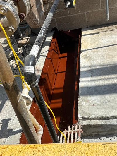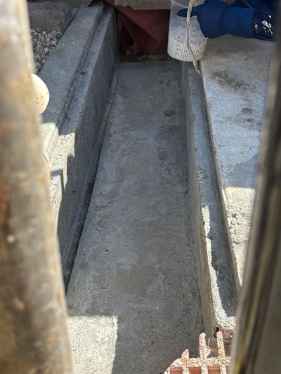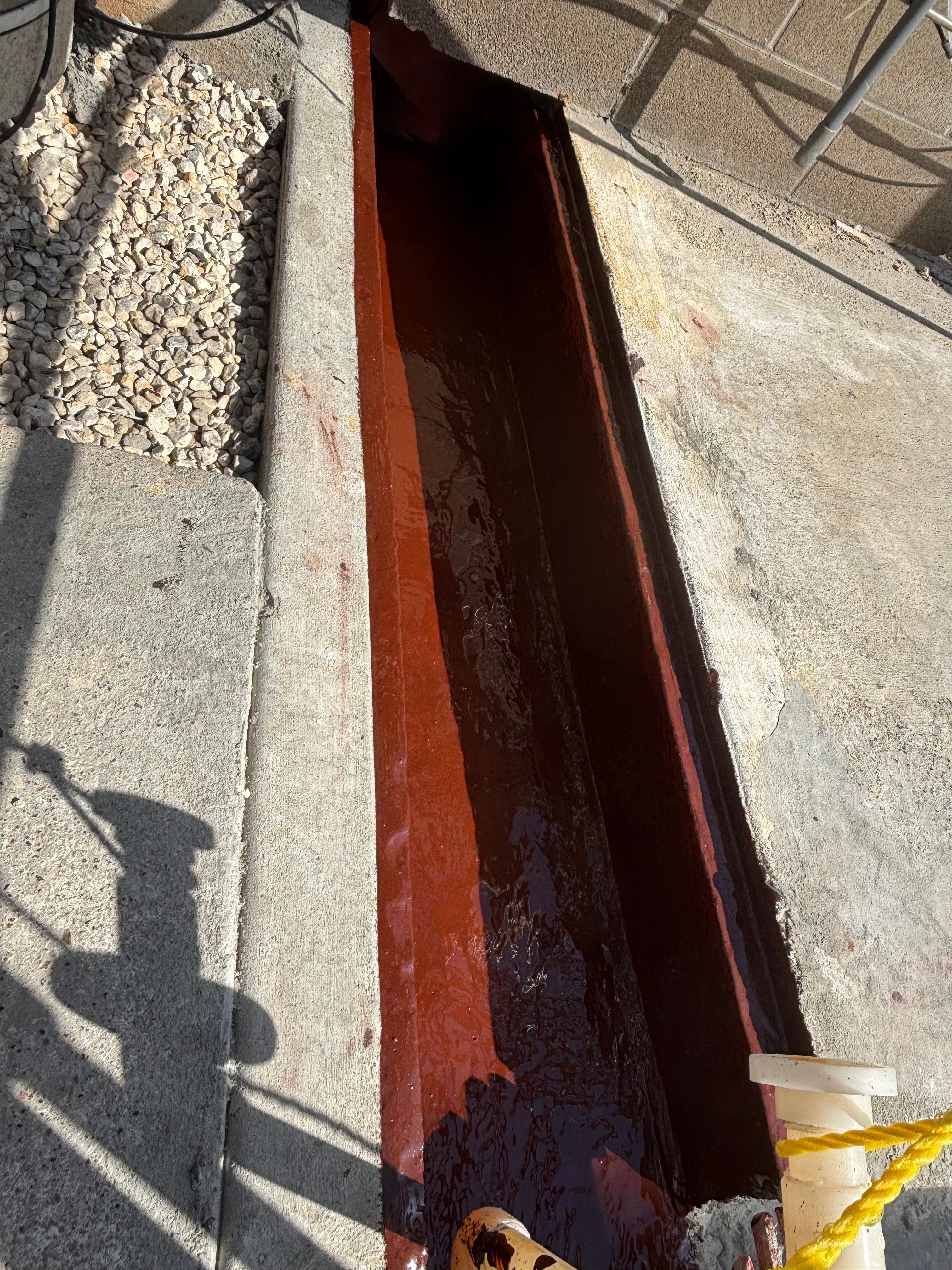 Problem: The customer recently repoured an area of concrete trench / drain that was previously eaten up from a sulfuric acid spill. The drain area has pipes in it that leaked onto the uncoated concrete and damaged it over time by chemical attack. After repouring the concrete drain area they wanted to line it to protect it from spills in the future.
