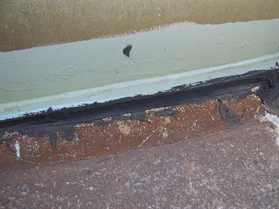 Problem: Corrosión externa de la base del tanque debido al fallo del sellado original.