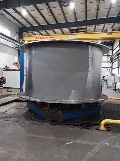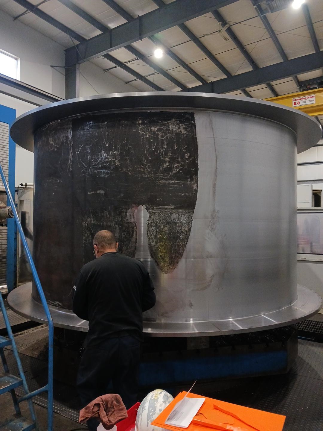 Newly fabricated cylinder experiencing reduction in diameter due to mill scale formation on some parts of the surface. Belzona was used to build the surface and machined to the required tolerance.