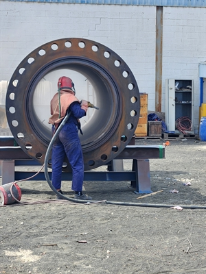 The first coat of Belzona 1391T was applied to the newly fabricated valve