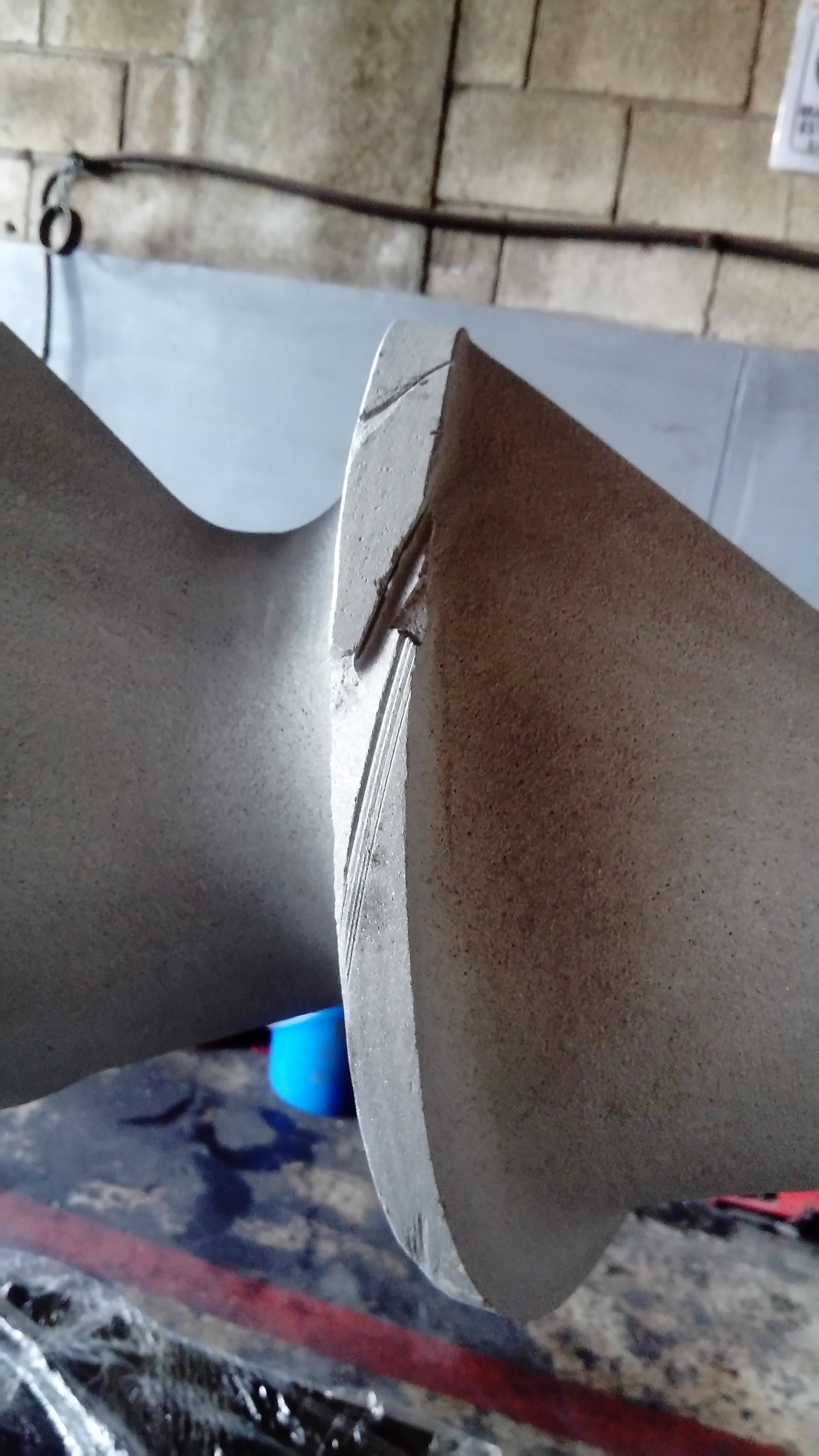 Maquina Binacchi extrusor de pasta de jabón con daños en el cuerpo y álabes del tornillo extrusor ocasionados por corrosión.