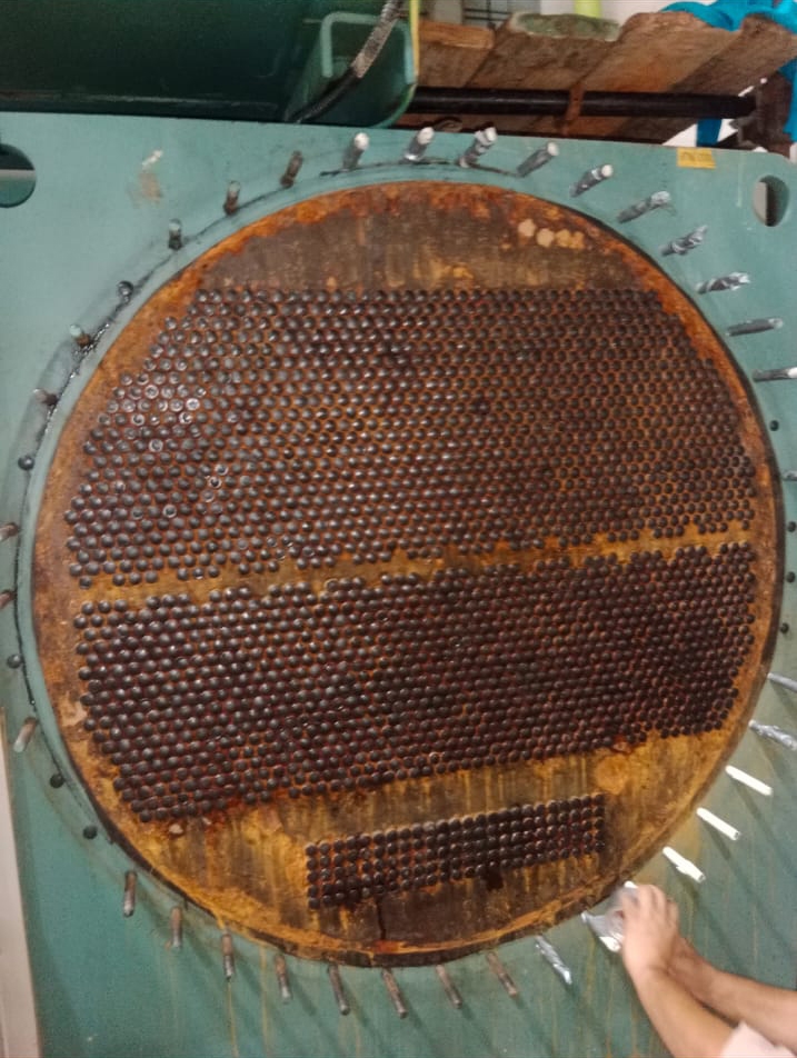 Problem: The tube sheet and end cover of the chiller units were severely corroded, causing a significant decline in efficiency. Furthermore, wear around the gasket seals prevented a proper seal, further affecting the chiller’s performance.