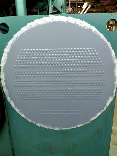 Belzona 5821 was applied as a two-coat system to protect the tube sheet and end cover from corrosion and erosion.