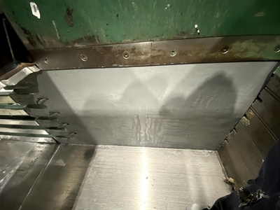 Problem: The lining of the baler was experiencing wear due to ramming of the loader. Plates could not be welded to both sides due to the thickness requirements. Belzona was consulted, we gave various options and customer picked that of rebuilding with a paste grade product.