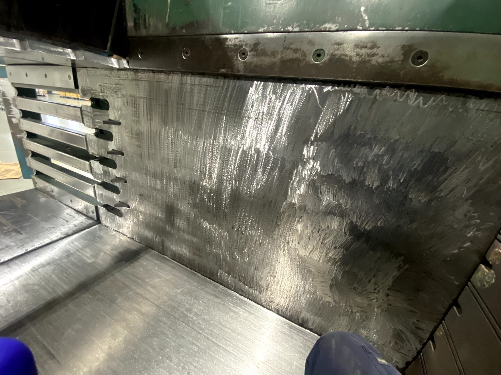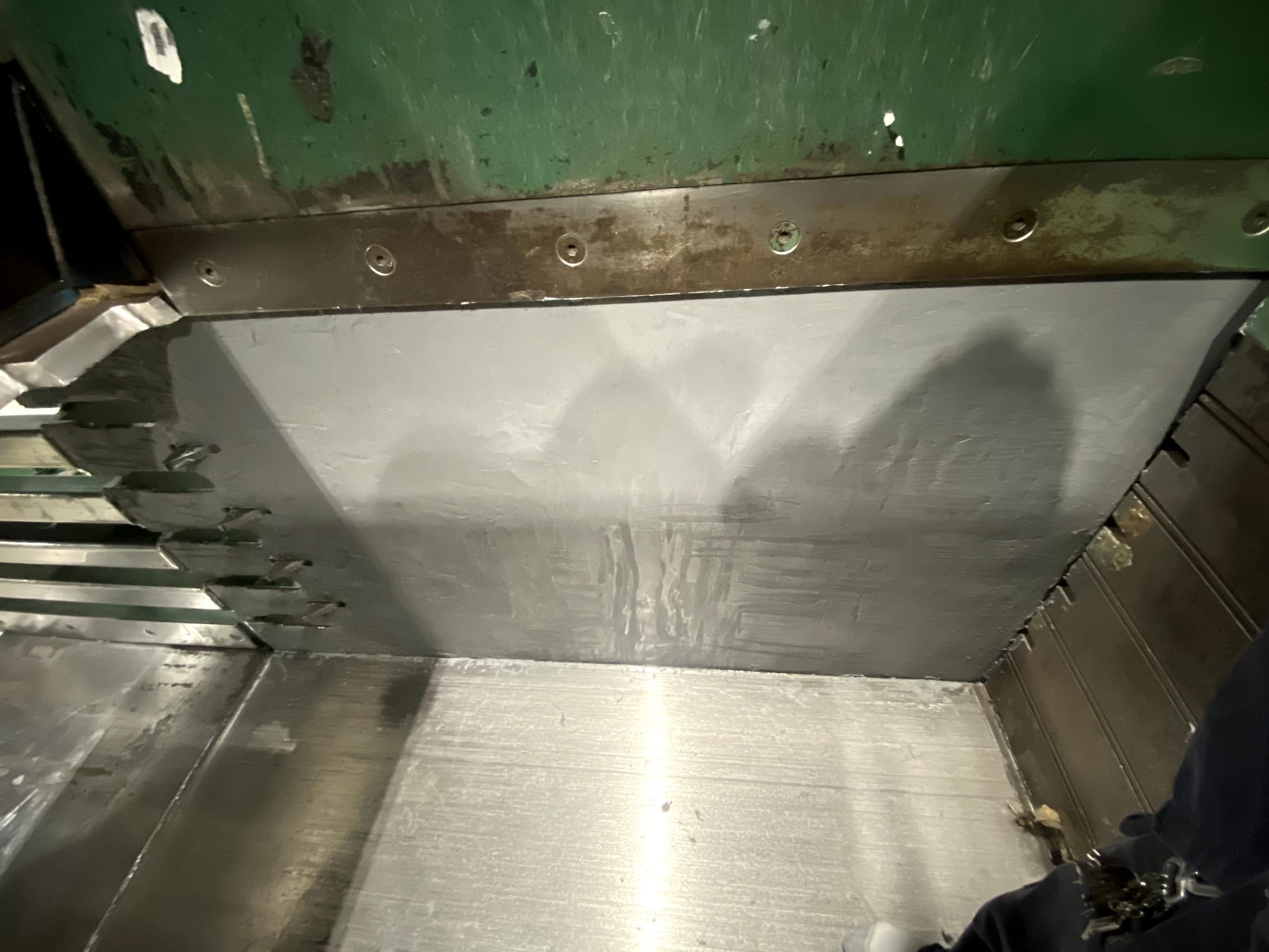 Baler lining after power tool cleaning before application of Belzona 1121.