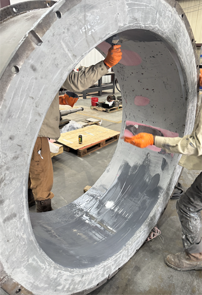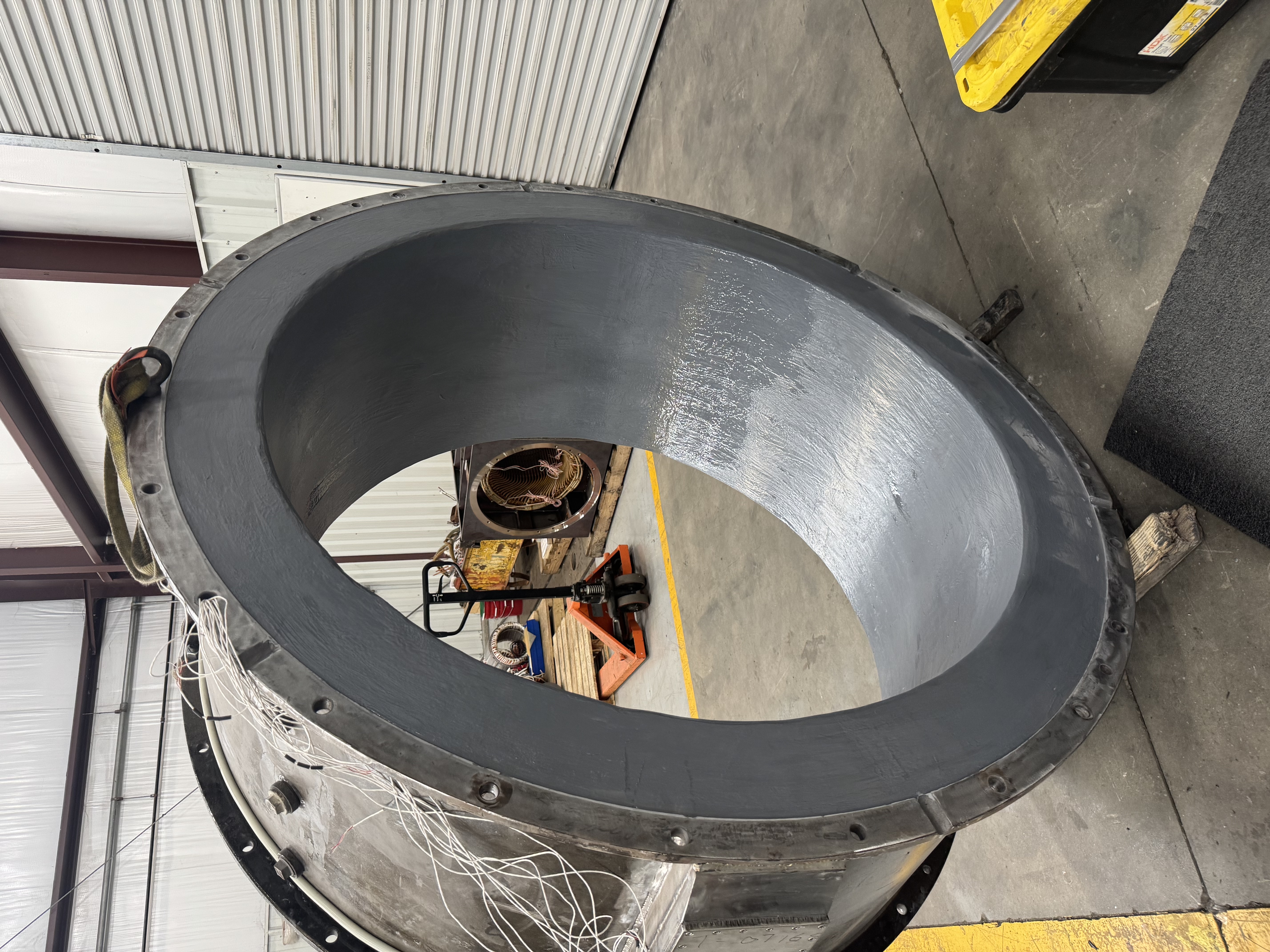 Problem: Our client is a motor manufacturer & repair shop that is industry wide. They received a fiberglass lined steel generator housing that is used submerged to process water through a hydro dam. The housing (1 of several) had been in service 25+ years and had started to see a leak into the motor area from the fiberglass internal ring. The design was no longer manufactured and could not be sourced, Belzona offered an option rebuild it.
