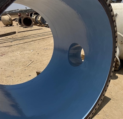 Completed application of Belzona 1341 (Supermetalglide) on the heat exchanger channel head.
