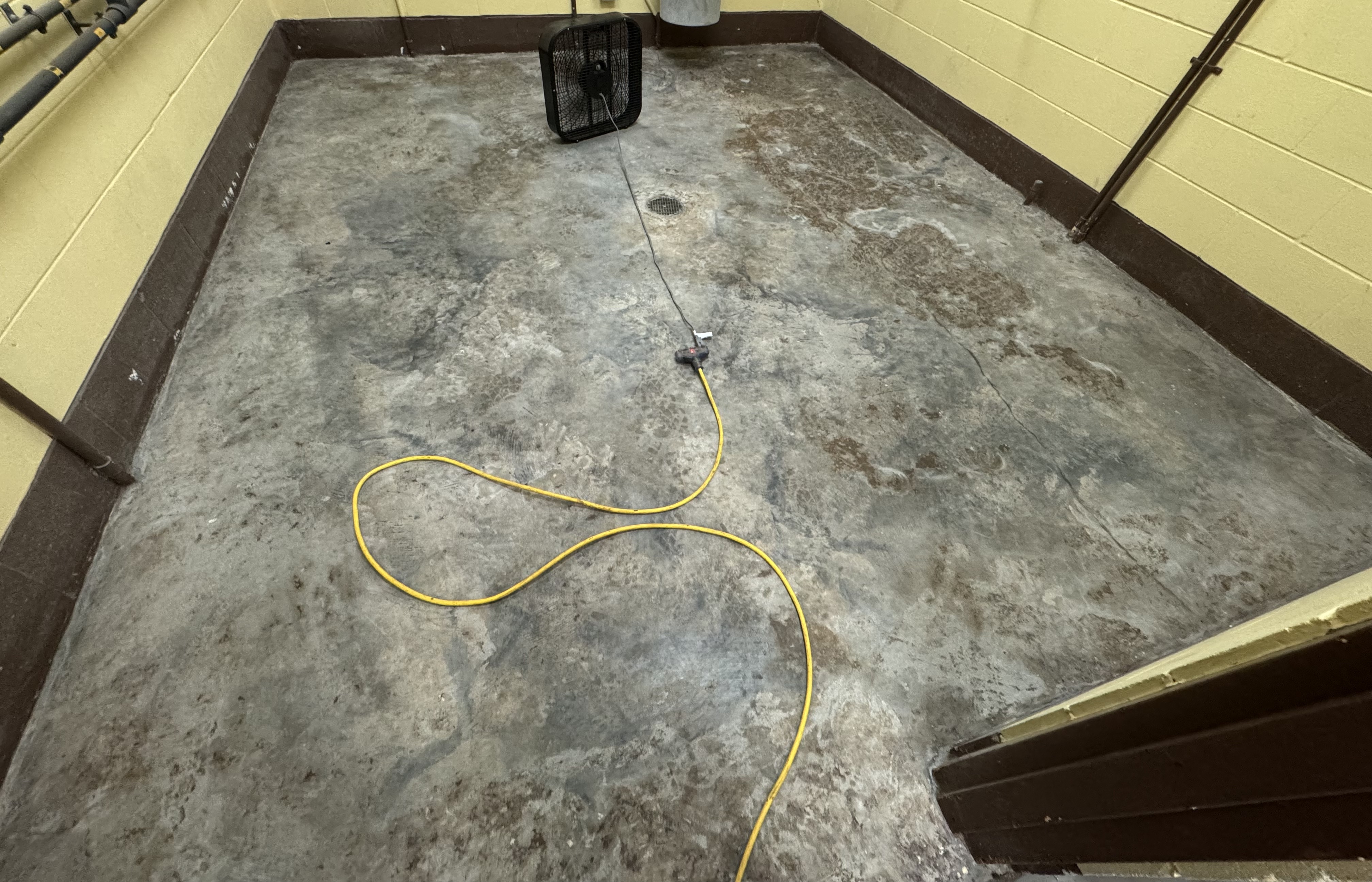 Our customer was looking for a cost efficient floor coating to protect chemical storage floors in the event of spills. These areas existed as closets before so the concrete was in good shape, just needed to be prepared for the coating.