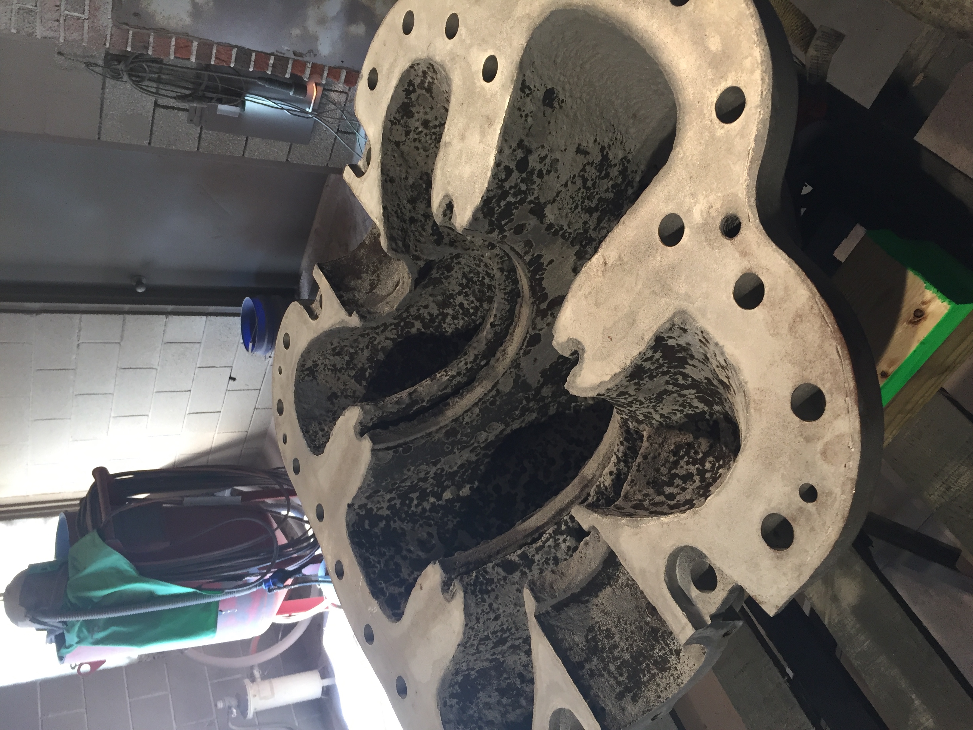 This picture shows the cutwater and wear rings rebuilt and coated.