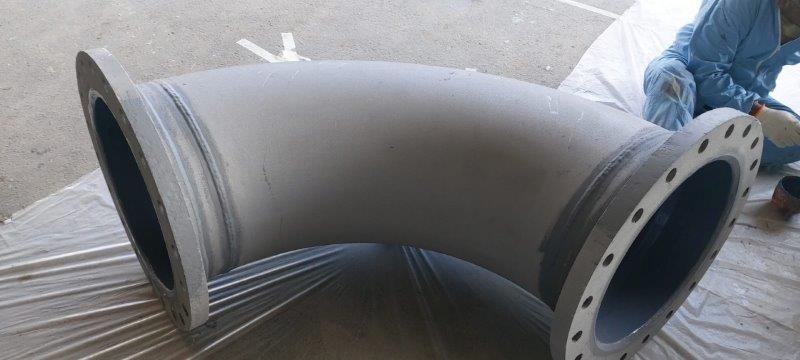 Application of Belzona 1321 (Ceramic S-Metal), an erosion-corrosion resistant lining, applied internally.
