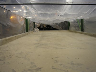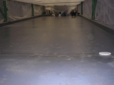 Application was carried out in accordance with Belzona Know-How system Leaflets TCC-15 and TCC-08. The outside area was tented out and the new concrete was coated with Belzona 4311. A special mortar mix of Belzona 4151 and AL203 ceramic aggregate was made for the 2 pads for the tractors feet to rest on, yellow tinted Belzona 4151 safety lines were also applied to help the driver park the tractor easily.