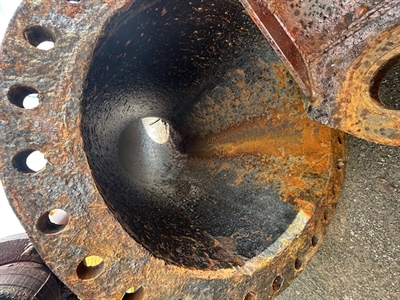 Problem: Customer was taking apart dredge apparatus after being in service continuously for over 6 years. Piping was heavily eroded with multiple through-wall holes (not pictured). Customer needed to get dredge apparatus back to work on contract within 1 month. Customer chose Belzona for a repair and coat system rather than spending several hundred thousand on new equipment.