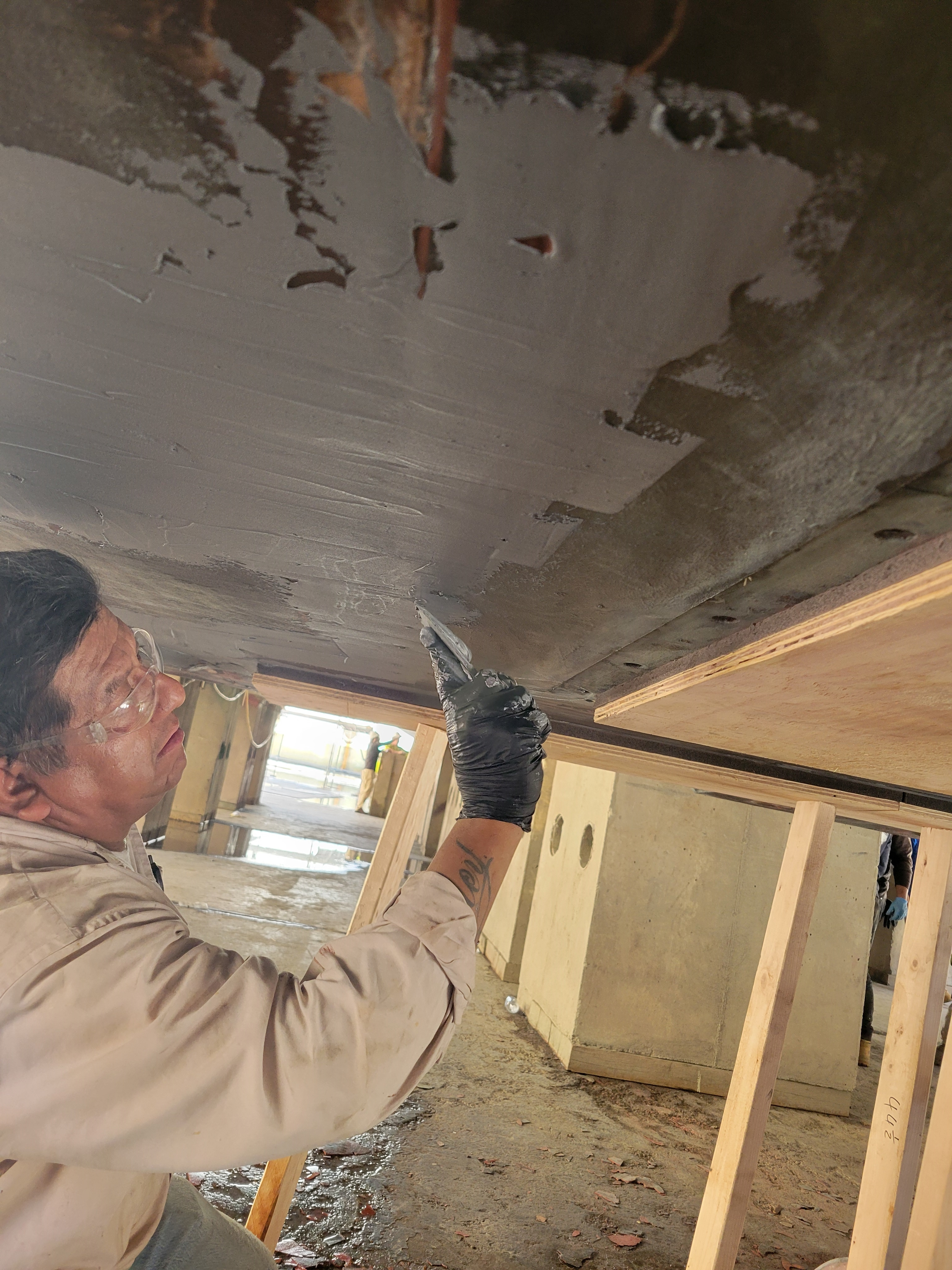 Surface Preparation: The damaged areas were cleaned and prepared by sanding and lite grinding to ensure maximum adhesion of the Belzona materials. This included removing any loose debris, contaminants, and preparing the surface for the composite.