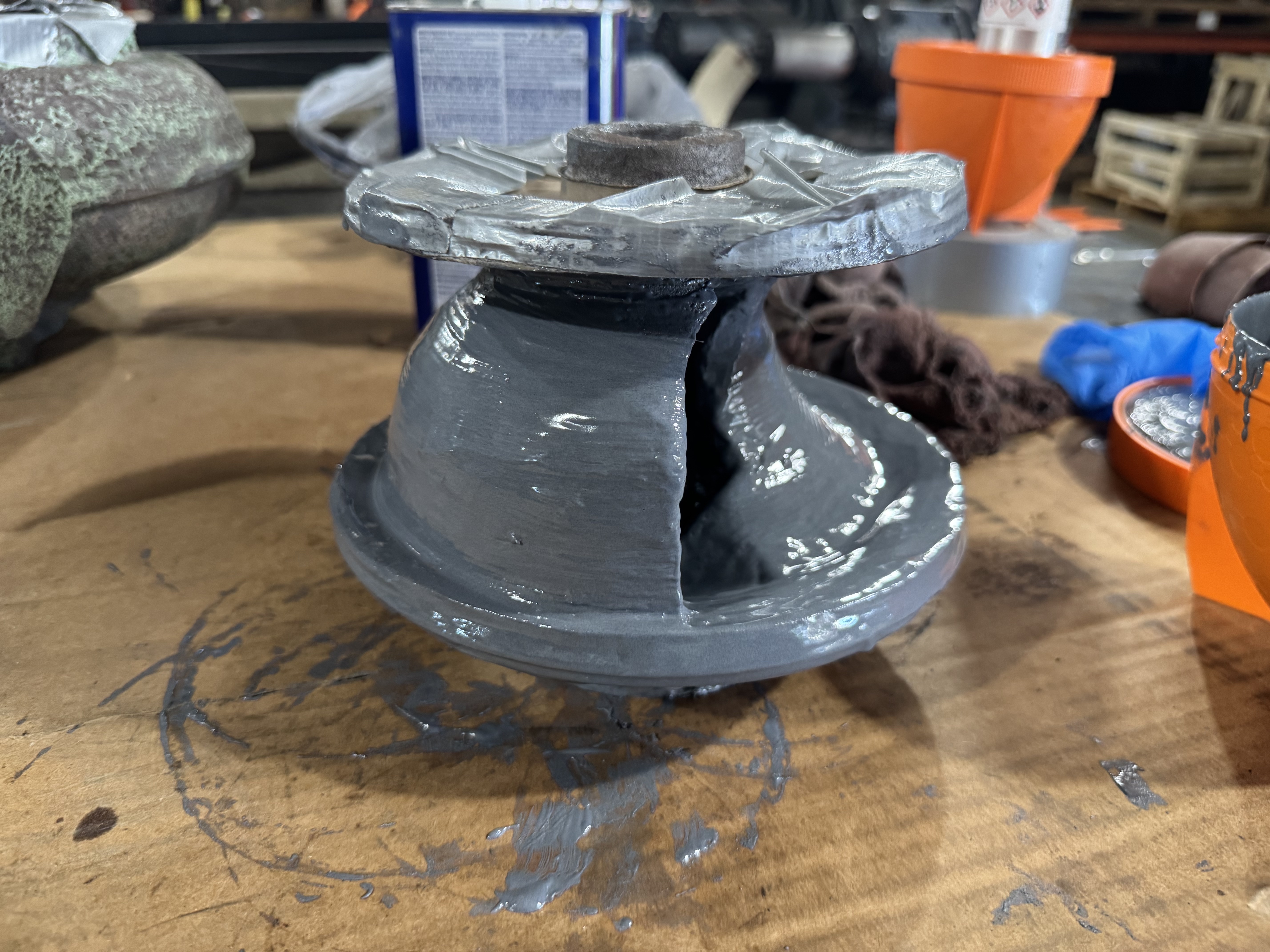 Problem: the impeller had a worn blade that needed to be rebuilt following years being in service. They also wanted to coat it for future protection.