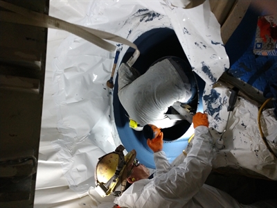 Applying the Belzona 1321 inside the sea strainer.