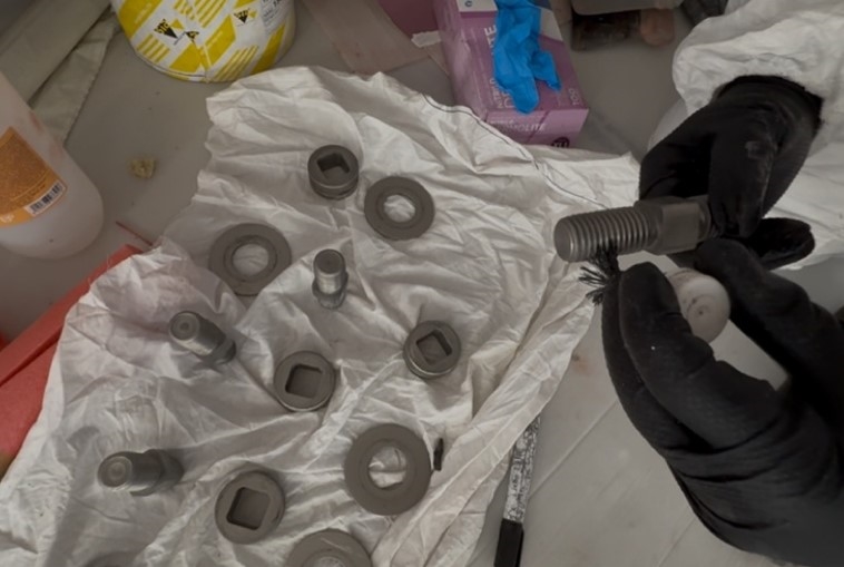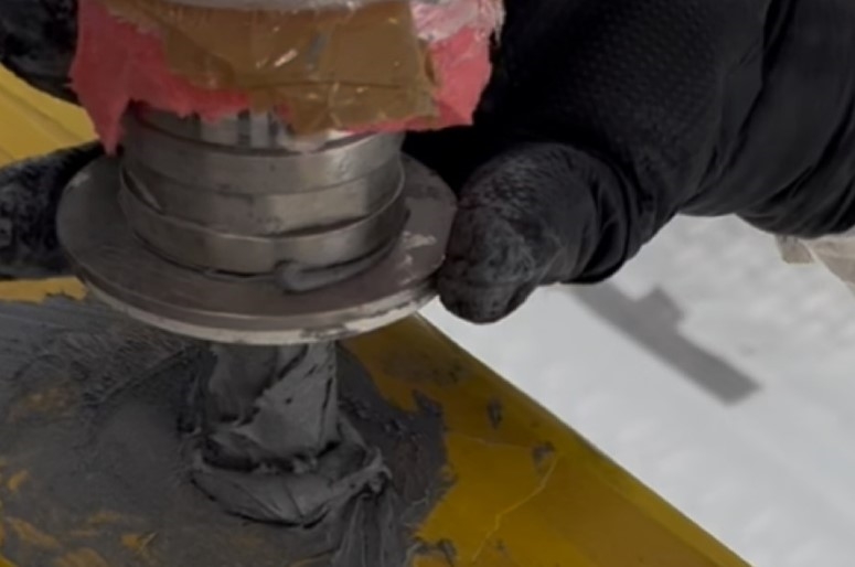 Once Belzona 1111/1121 was mixed, both the bolt holes and the bolt threads were wet-out before additional material was injected. The bolts were then inserted using a twisting motion. The Belzona was allowed to cure in accordance with its IFU.