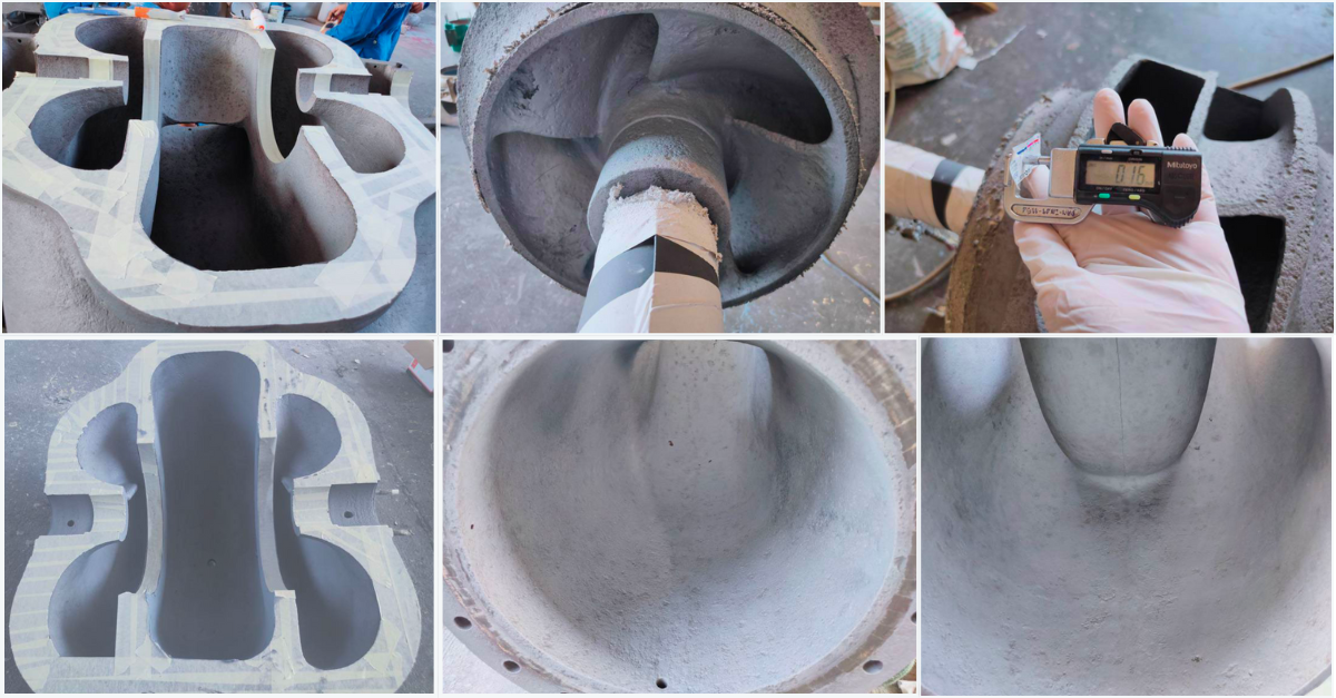 5. The second coat of Belzona 1341 (Supermetalglide) was applied at a minimum dry film thickness 200 microns on the casing area. For the impeller, the second coat of Belzona 1331 was applied at a minimum dry film thickness 250 microns.
