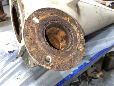 4. Belzona 1311 was applied by hand to rebuild the flange faces to create a flat surface. After dimensionally stable, the 1311 was sanded flush best effort.