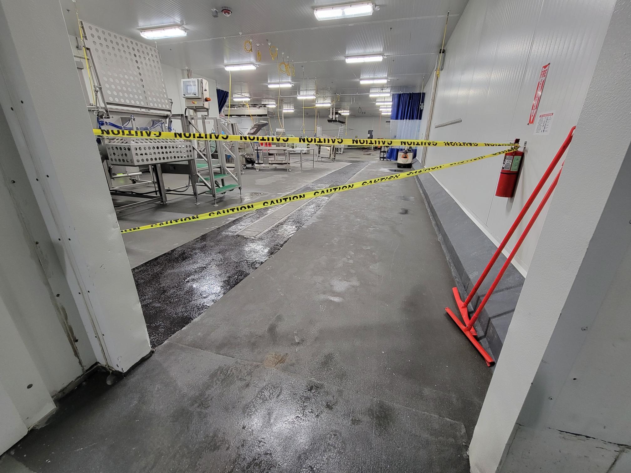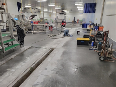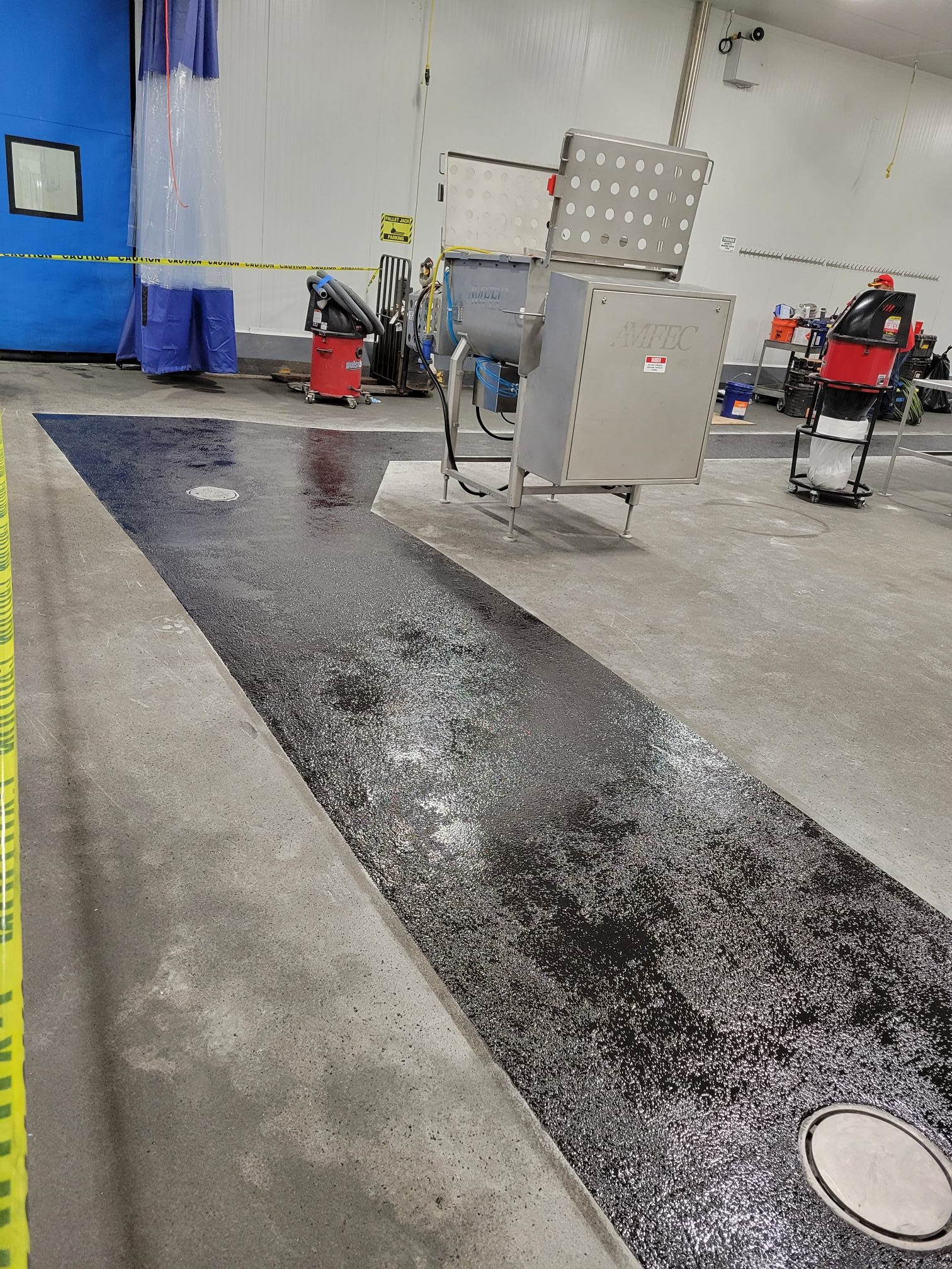 The floor was prepped with hand tools, cleaned and then repaired whit Belzona 4111.