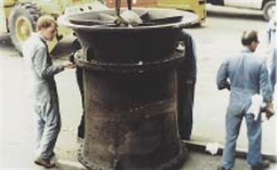 - Reparación en progreso, utilizando una plantilla de guía rotatoria para crear la forma y dimensiones internas sin necesidad de mecanizado.