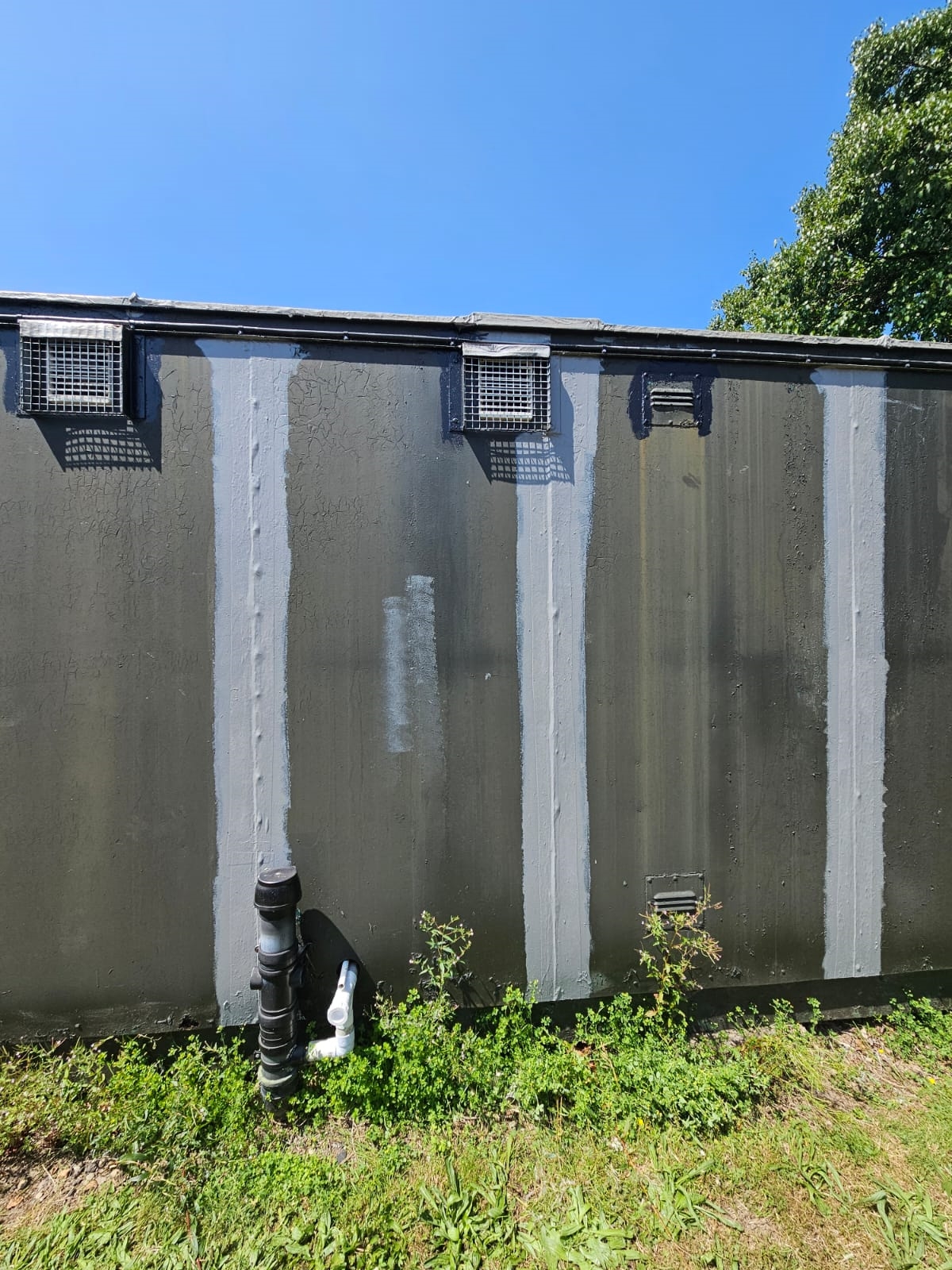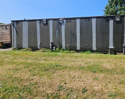 Problem: A community Junior football team were using a modified container as their main changing and shower facility. The roof and walls were found to be letting in rain water and needed to be sealed