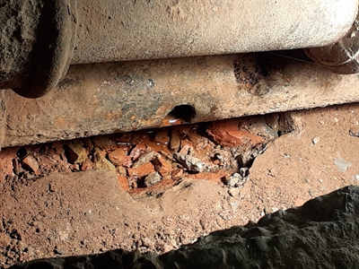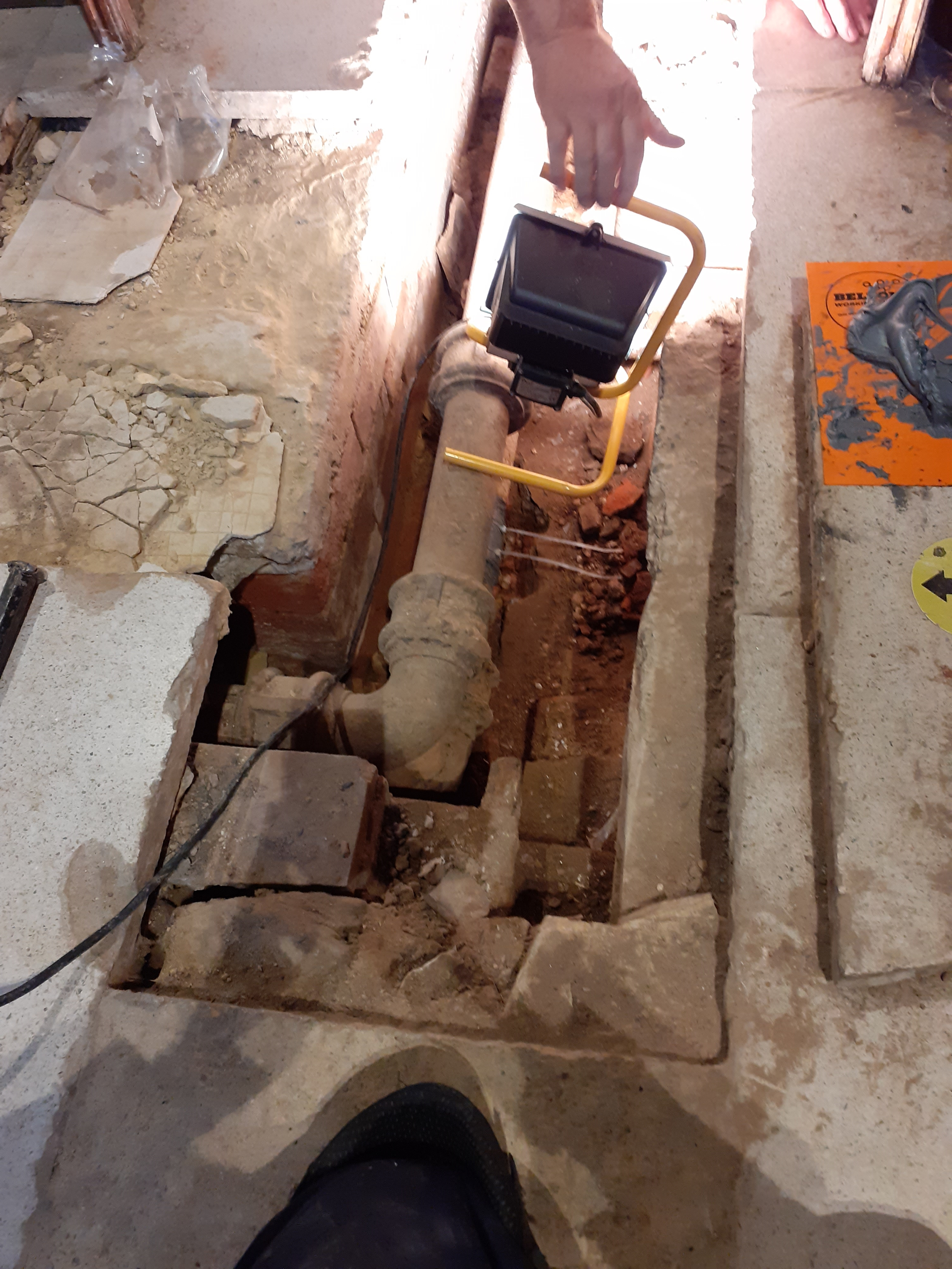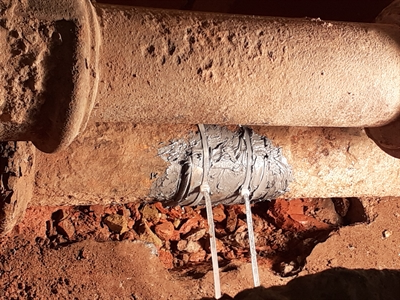 Problem: Water was accumulating on the church floor, which appeared to be emanating from under the floor itself. The floor was lifted and a large hole was identified in the cast iron mains water pipe.