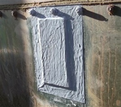 Build up Belzona 1111 to a peak on the patch and press onto the damaged area, securing with straps, magnets or sprag