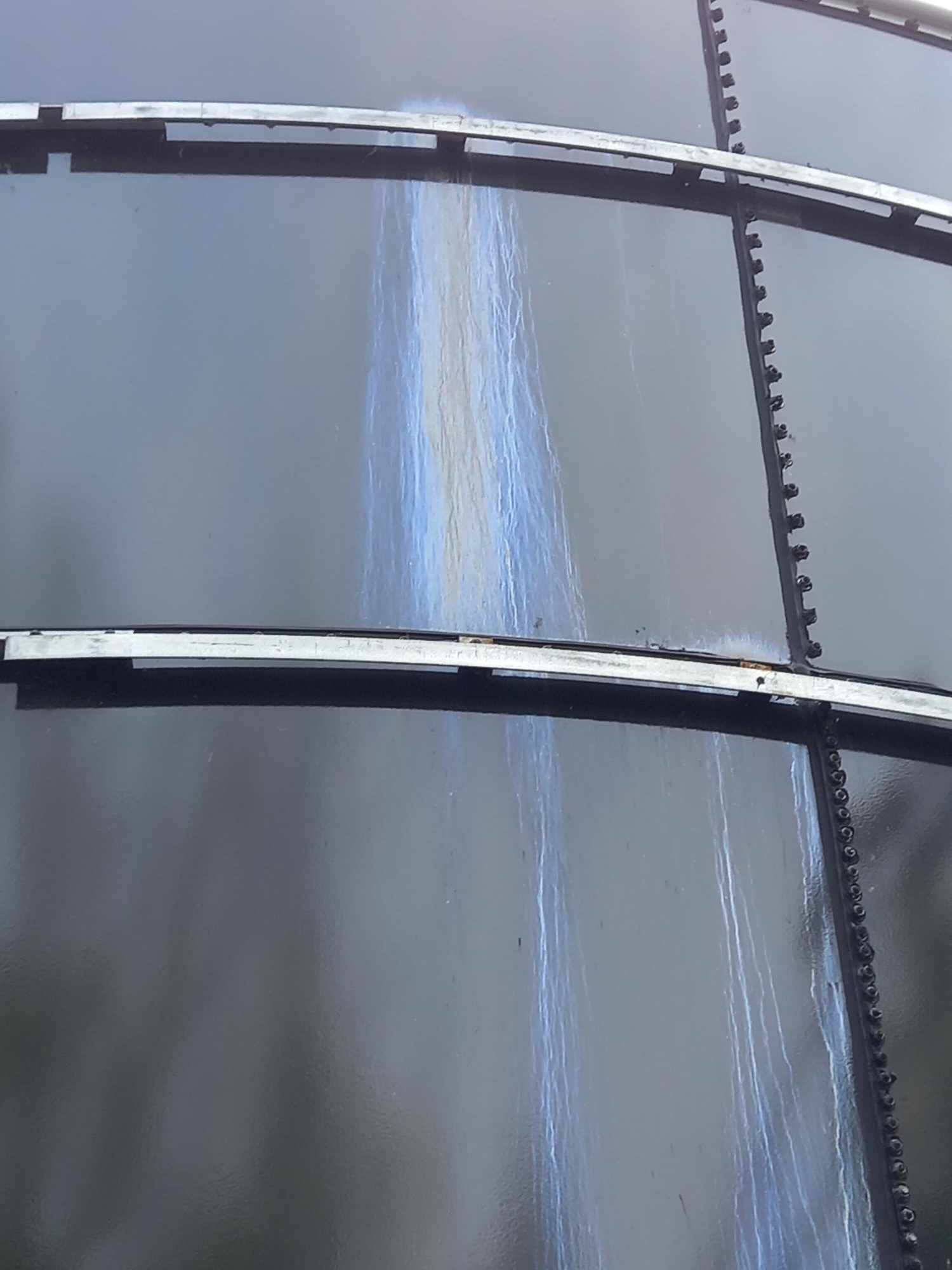 Leaks showing throughwall on large settlement tank
