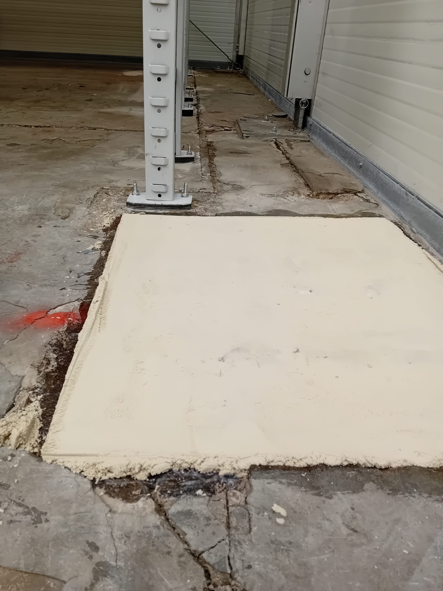 Any unfinished external areas were also repaired using the system as above to leave a solid, level pad for the bolting of the racking to take place