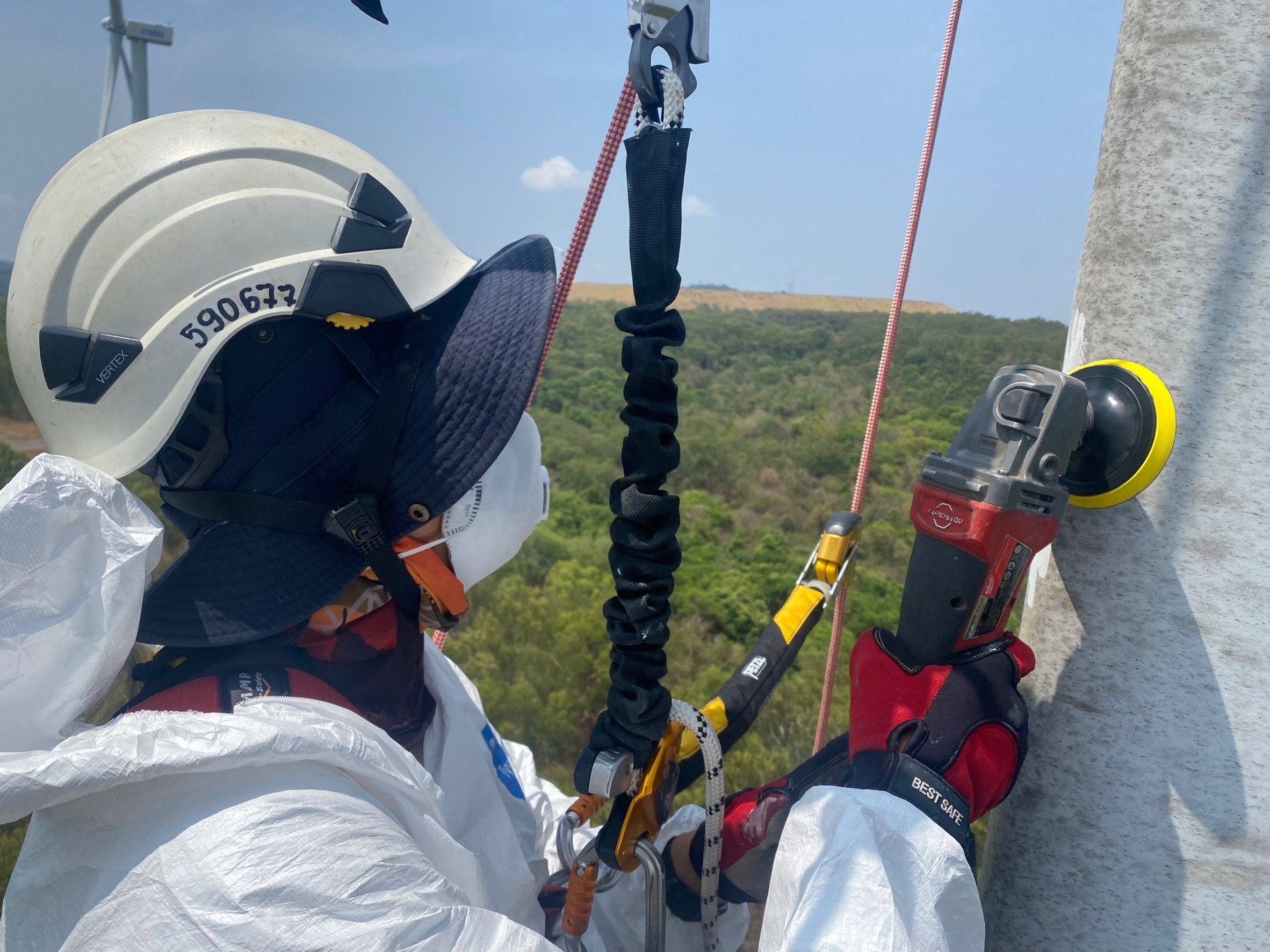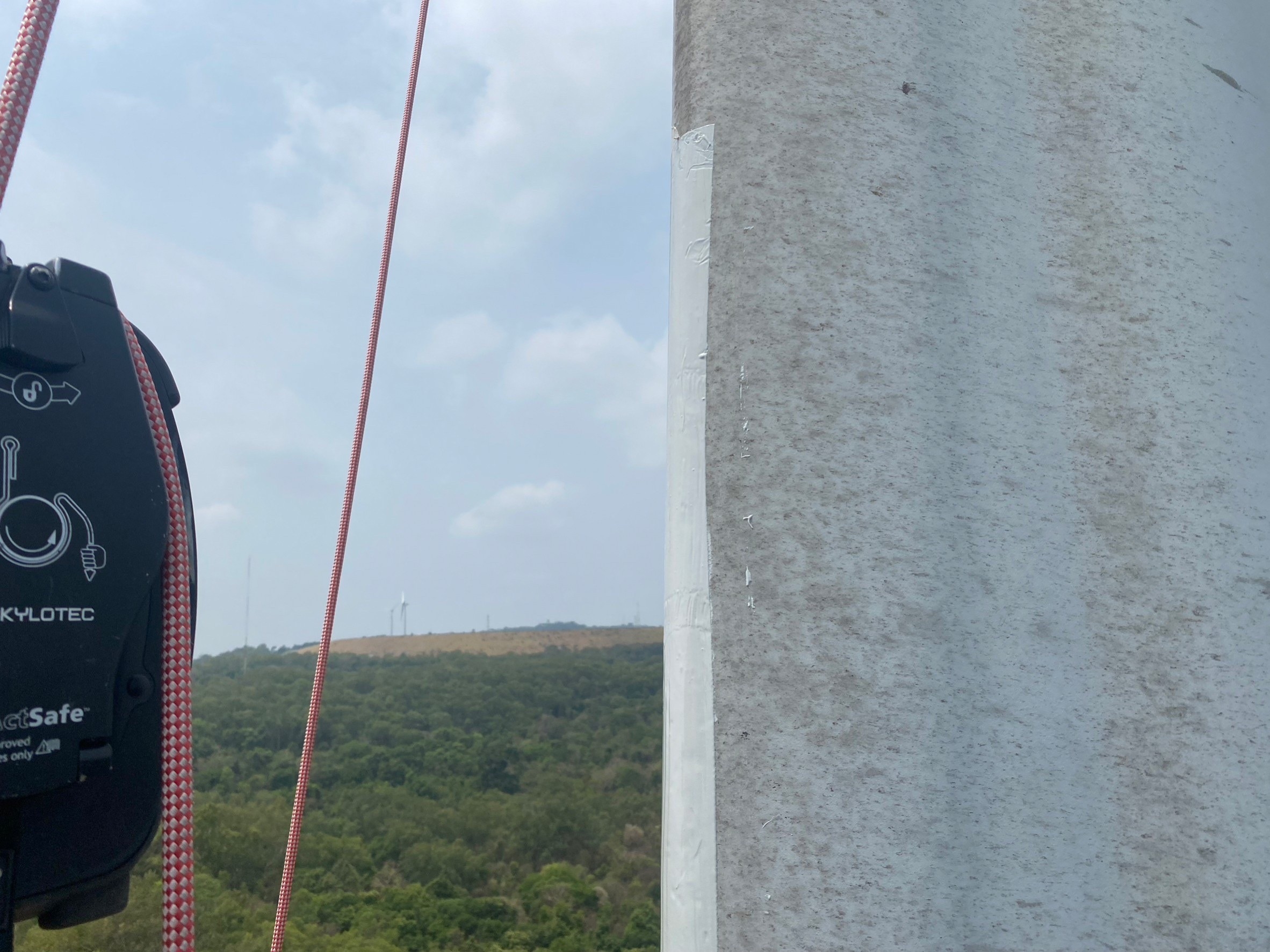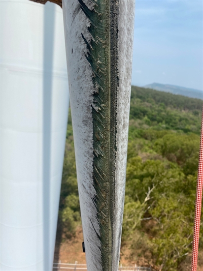 Pitting damage and coating deterioration because of rain erosion and UV attack at leading edge area. The Customer usually plans to repair and coat one turbine at the leading edge of a wind turbine per year.