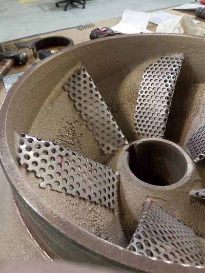 Problem: The client took a pump out of service for inspection and found several problem areas. The impeller being one of them. The leading edges were worn almost half way off.
