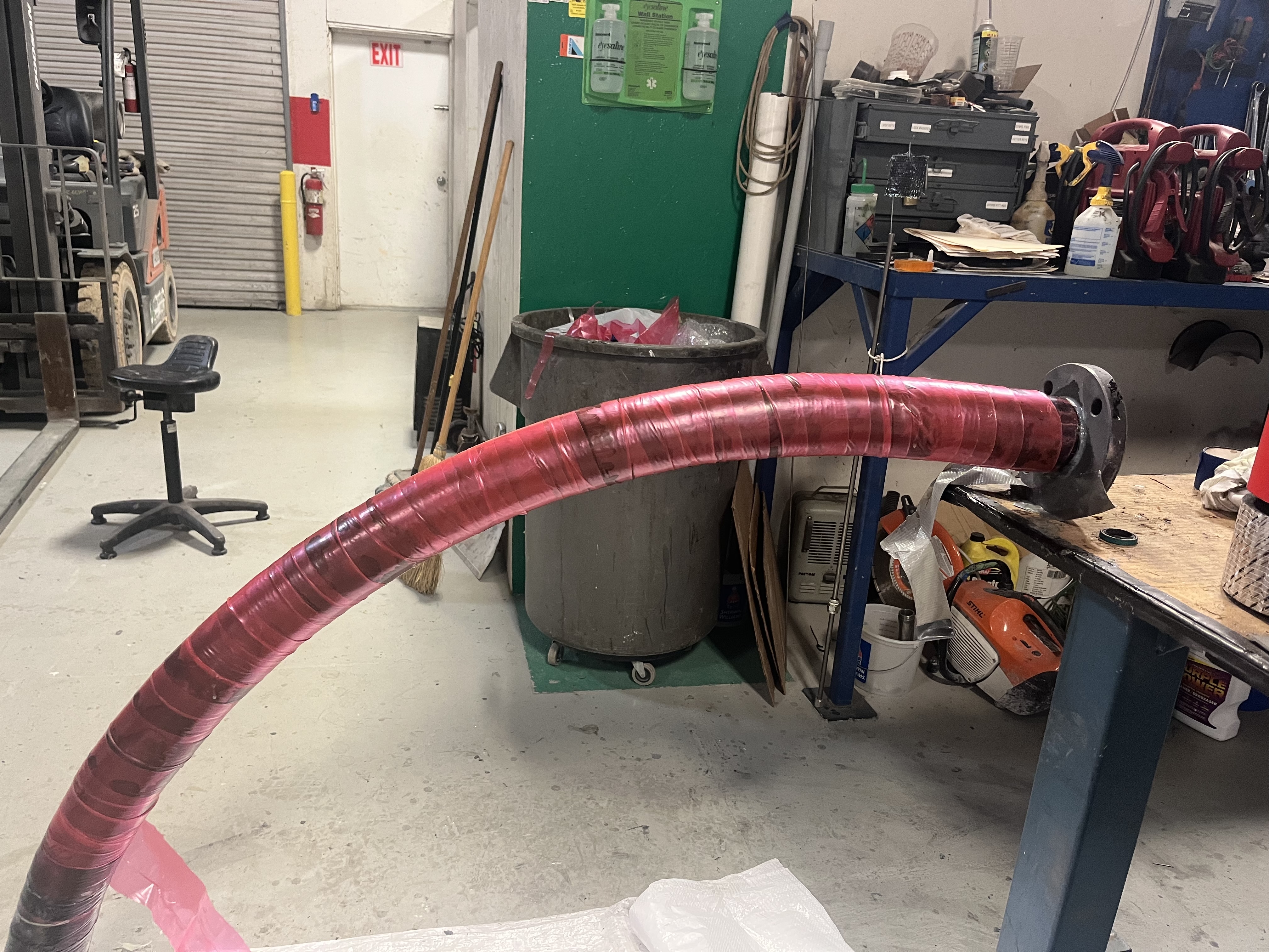 The customer was replacing this pipe every 2-3 months due to wear from the process flowing through the pipe. Since the inside diameter was smaller and we couldn’t add the tile to the inside we added the tile to the outside and filled the voids using Belzona 5821 with Cabosil as a grout and to add some wear resistance. The customer asked if we could do anything further to add anymore life to the pipe. After our team discussed this we decided to wrap the pipe using Belzona 1984 Super Wrap II. This is the second one we have completed for them this year and the first one was completed in February 2025. We have went from 3 months to 10 months and still counting. Cost of downtime and replacing the pipe every 3 months was around $150,000 plus production time.