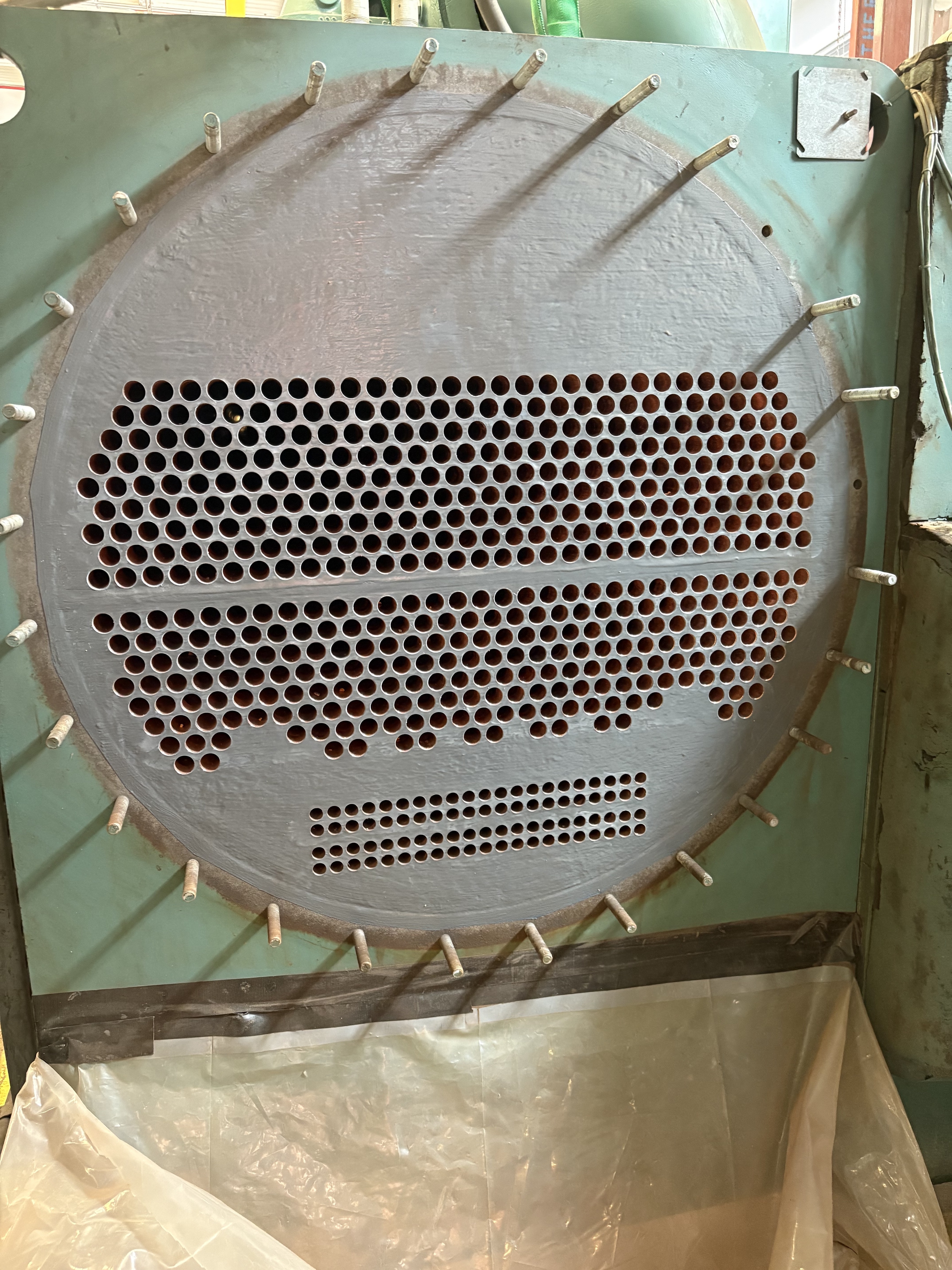 Tube sheet restored with Belzona 1121 for rebuilding and fully coated with Belzona 1321 to provide long-term protection against corrosion and erosion. Surface restored to a smooth, uniform finish ready for reassembly.