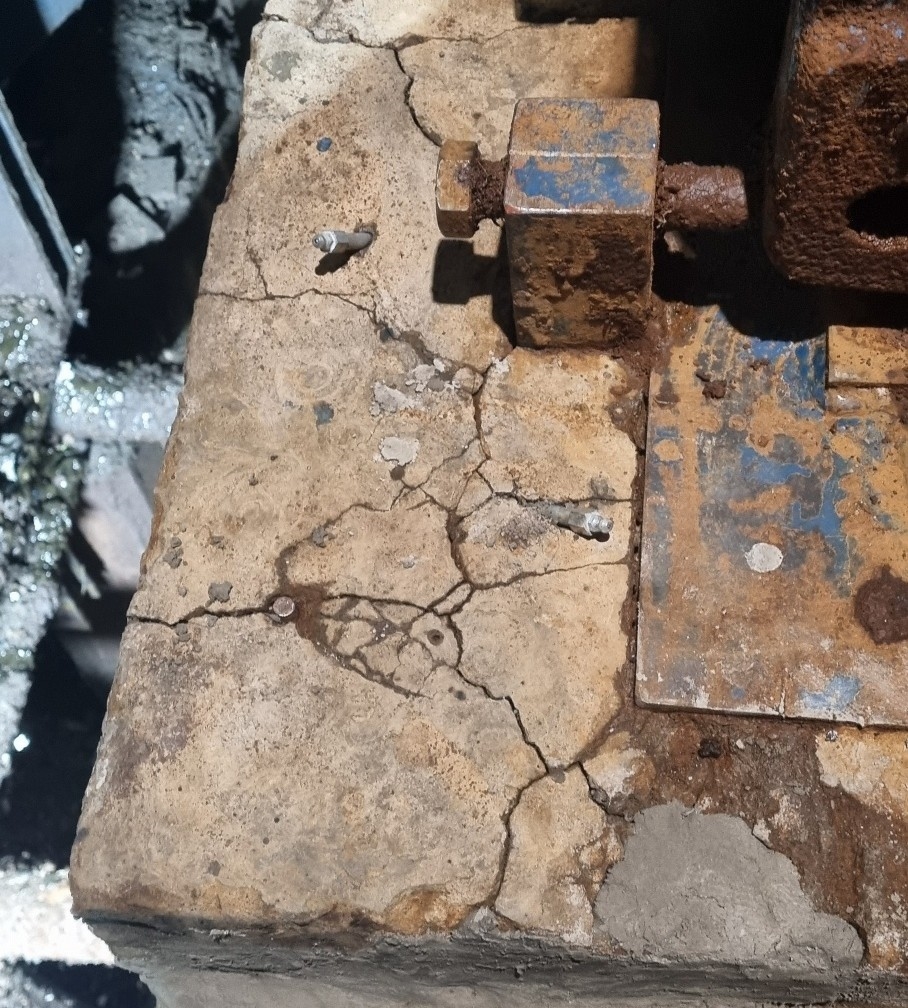 Concrete stitching to damaged Gearbox plinth
