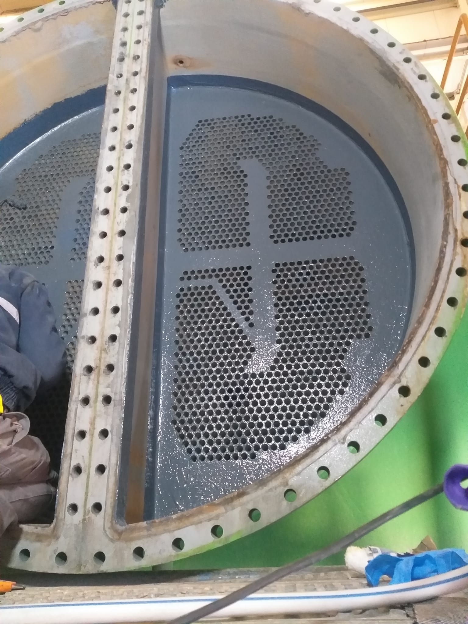 The customer faced corrosion issues between the mirror and tubes in the condenser exchanger due to water flow. The customer was looking for a solution to prevent corrosion. The application was successfully completed using Belzona products.