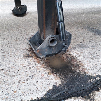 Problem: The Landing legs on the 40' trailers had worn depressions into the concrete floors. These were causing problems with fork lift traffic and other vehicles as some of the depressions were over 40mm deep