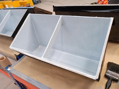 Showing blasted bucket with 1st coat of Belzona 1341 Supermetalglide