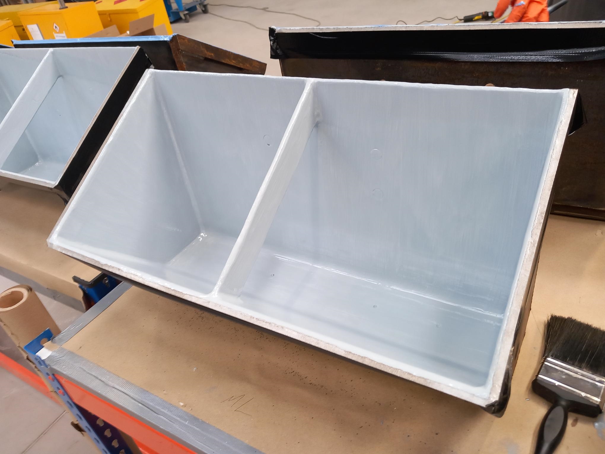 New buckets, purchased as a regular replacement of the old kit, were transported to Hawarden and the Belzona applications team carried out the blasting and coating works in-house