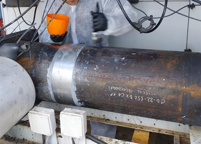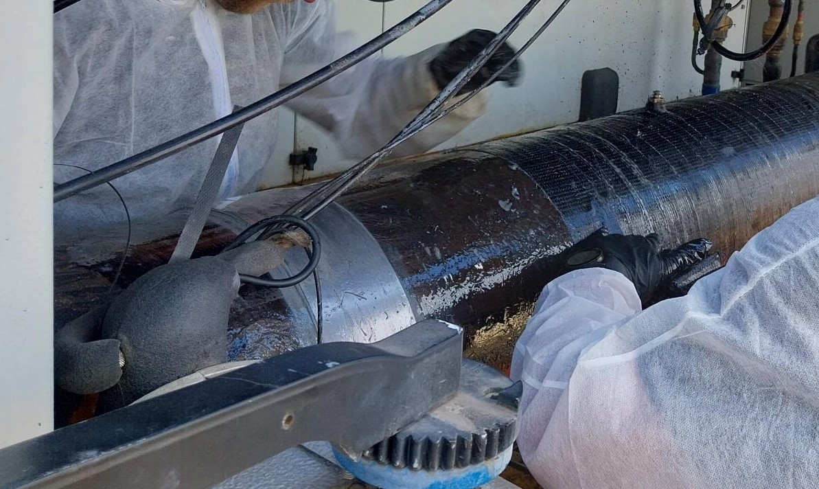 2 collars were fabricated and prepared with power tools. These were to be bonded at each end of the tube with Belzona 1161 to give anchor points for the Belzona 1984 Superwrap II application