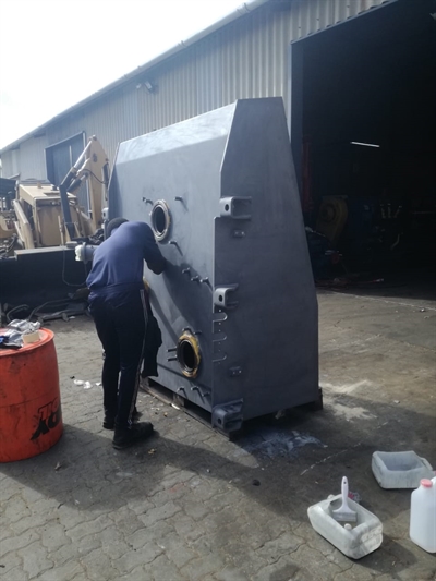 Problem: Excavator external fuel tank had rust and pitting on the outside of the tank from years of work in the mining industry. It was painted for years but it was still rusting.