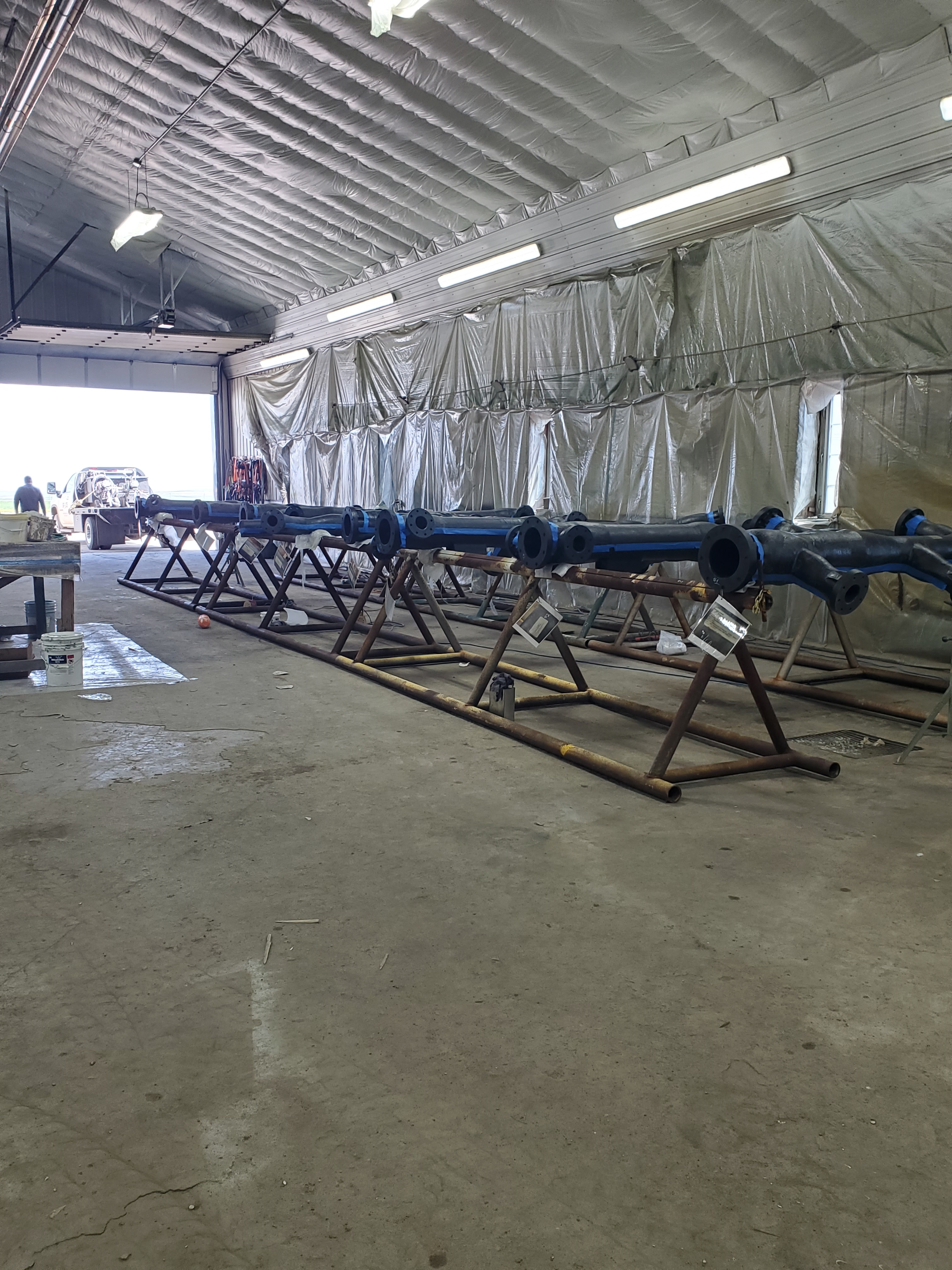 Fiberglass headers ready for manual preparation. These headers were taken off site and delivered to contractor's shop.
