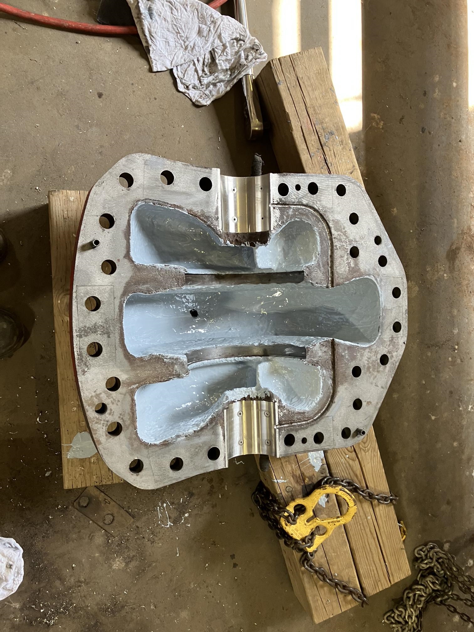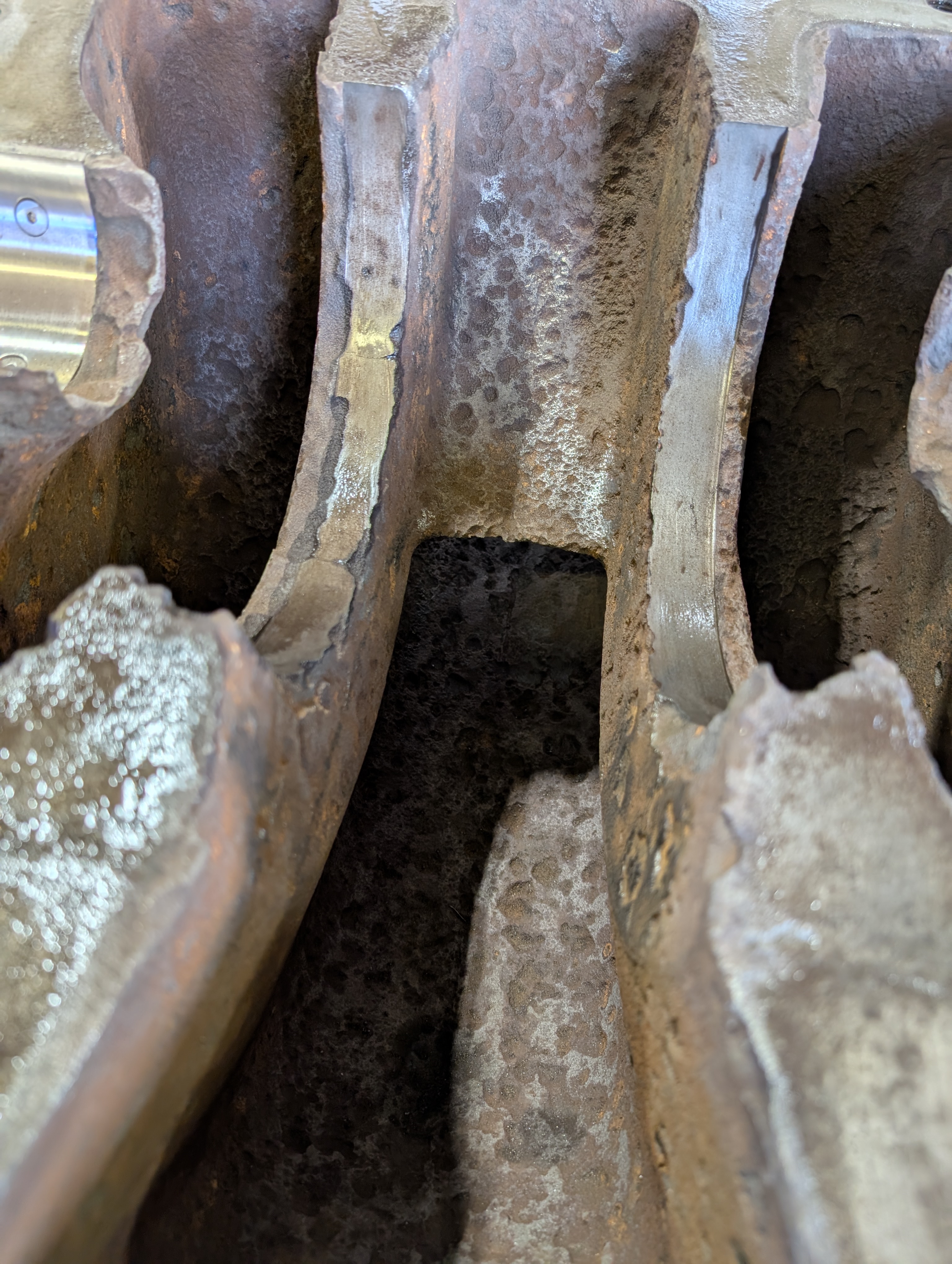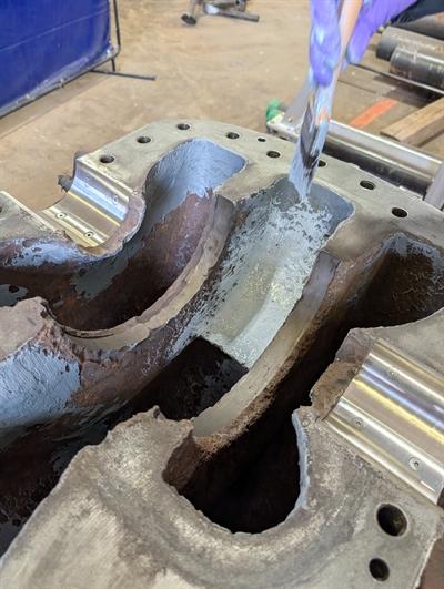 Severely pitted and corroded areas were rebuilt using Belzona 1121 (Super XL-Metal). Applied by hand to restore original casing geometry.