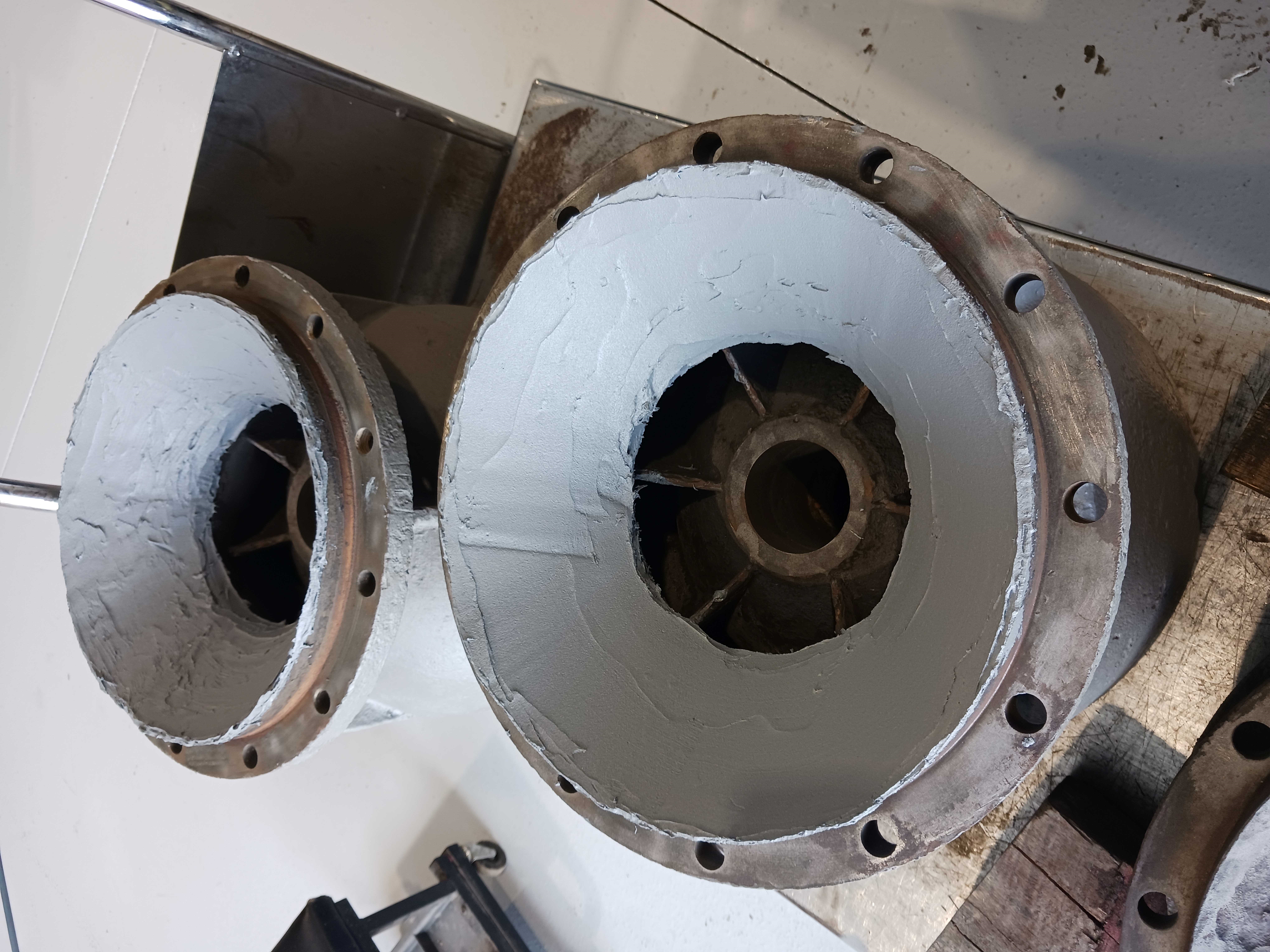 Bowl 1 Corrosion blasted and ready for rebuilding with Belzona 1111
