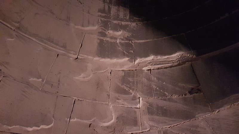 A Humboldt-type separator operates in a cement plant 24/7. It is cladded with basalt tiles, which are good and long-term solution, but eventually they get worn by severe abrasive influence of cement particles that are travelling through the separator in a turbulent flow. Customer allows a 5-day window to perform works inside the separator, during the annual turnaround and was looking for a solution that can solve the problem within selected timeframe.