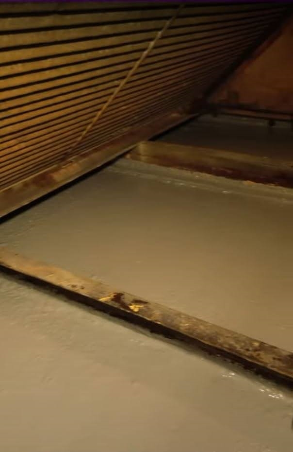 The surface-tolerant properties of Belzona 5831 were essential for this application. There was significant moisture and condensation on the surface, making it impossible to fully dry, and the substrate was so deteriorated that achieving ideal surface preparation was challenging.
