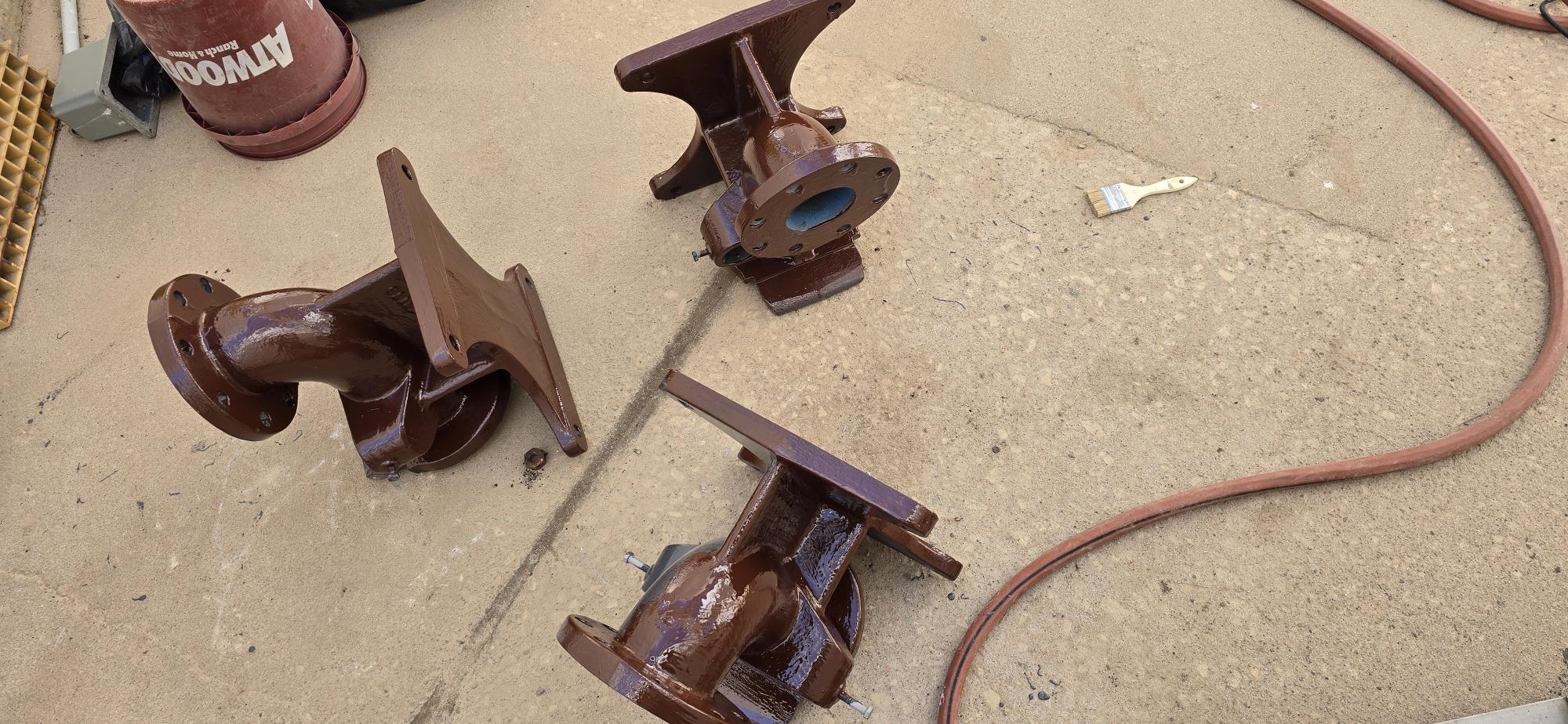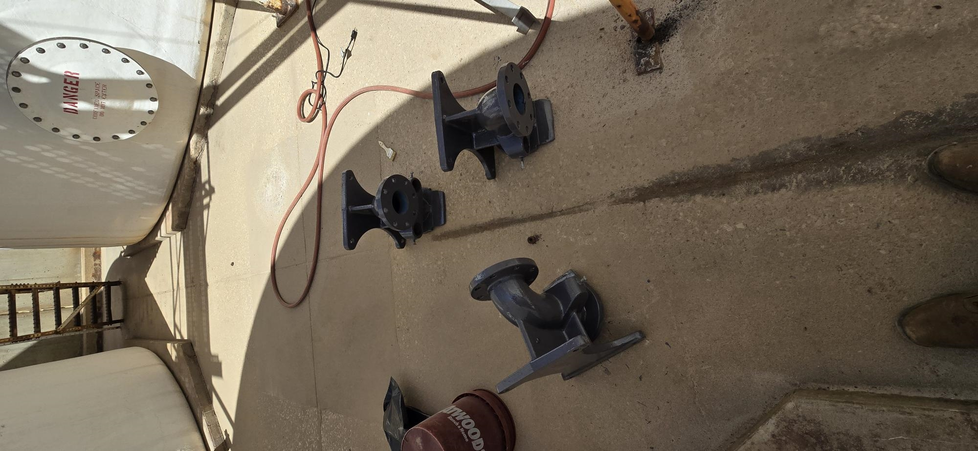 Pump pedestals being blasted