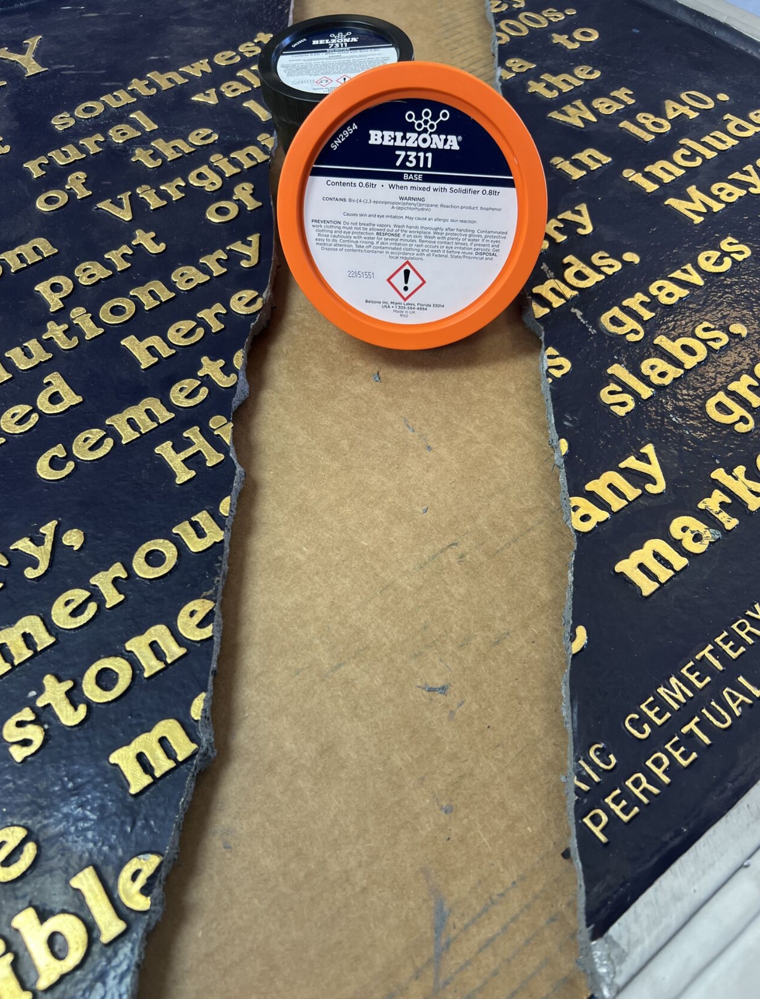 Problem: This historical sign for a local graveyard dating back to the 1800’s was struck by a vehicle that ran off the road. The vehicle struck the sign causing it to break into two separate pieces.