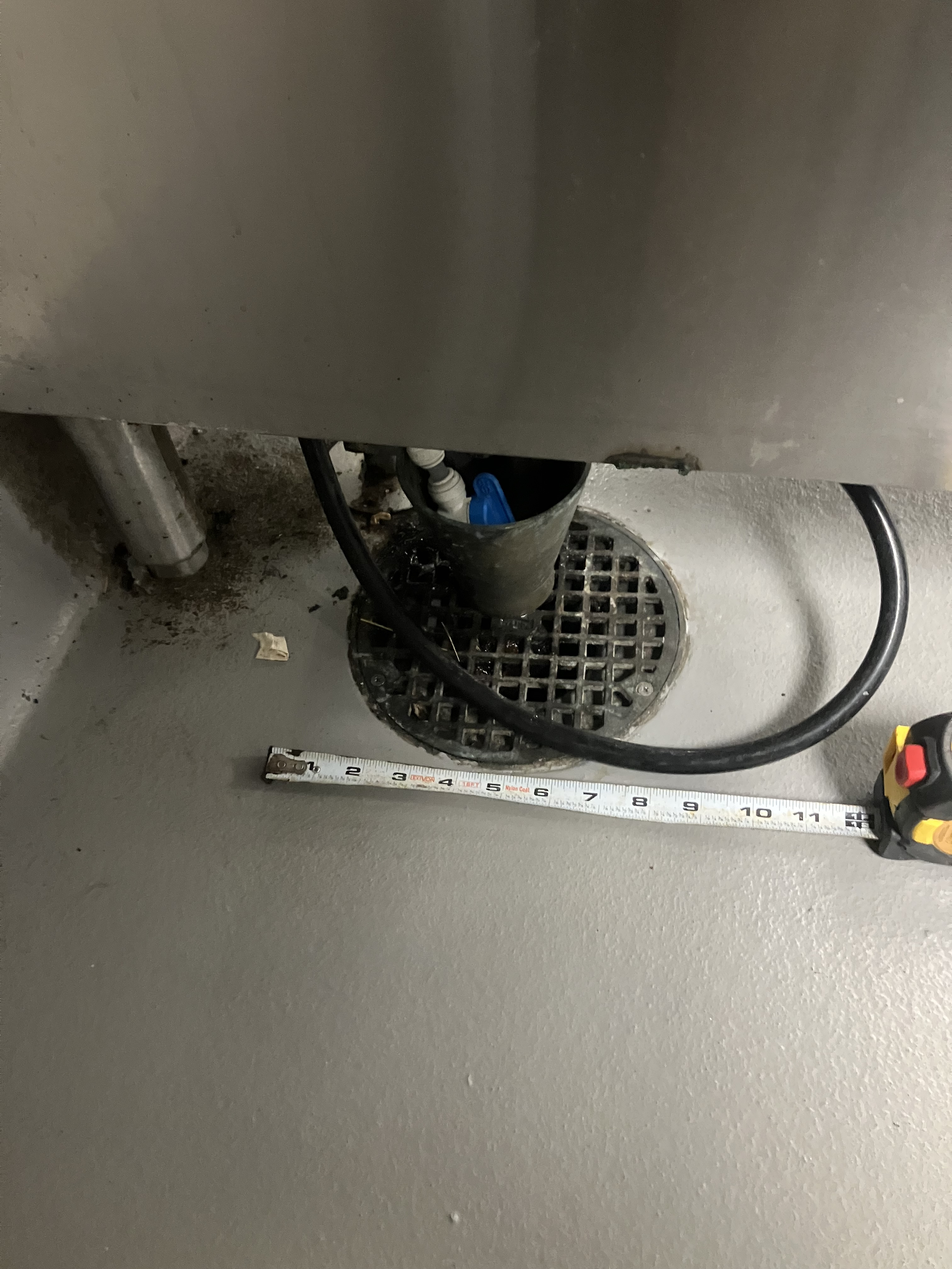 Drain close up image, with tape measure for scale