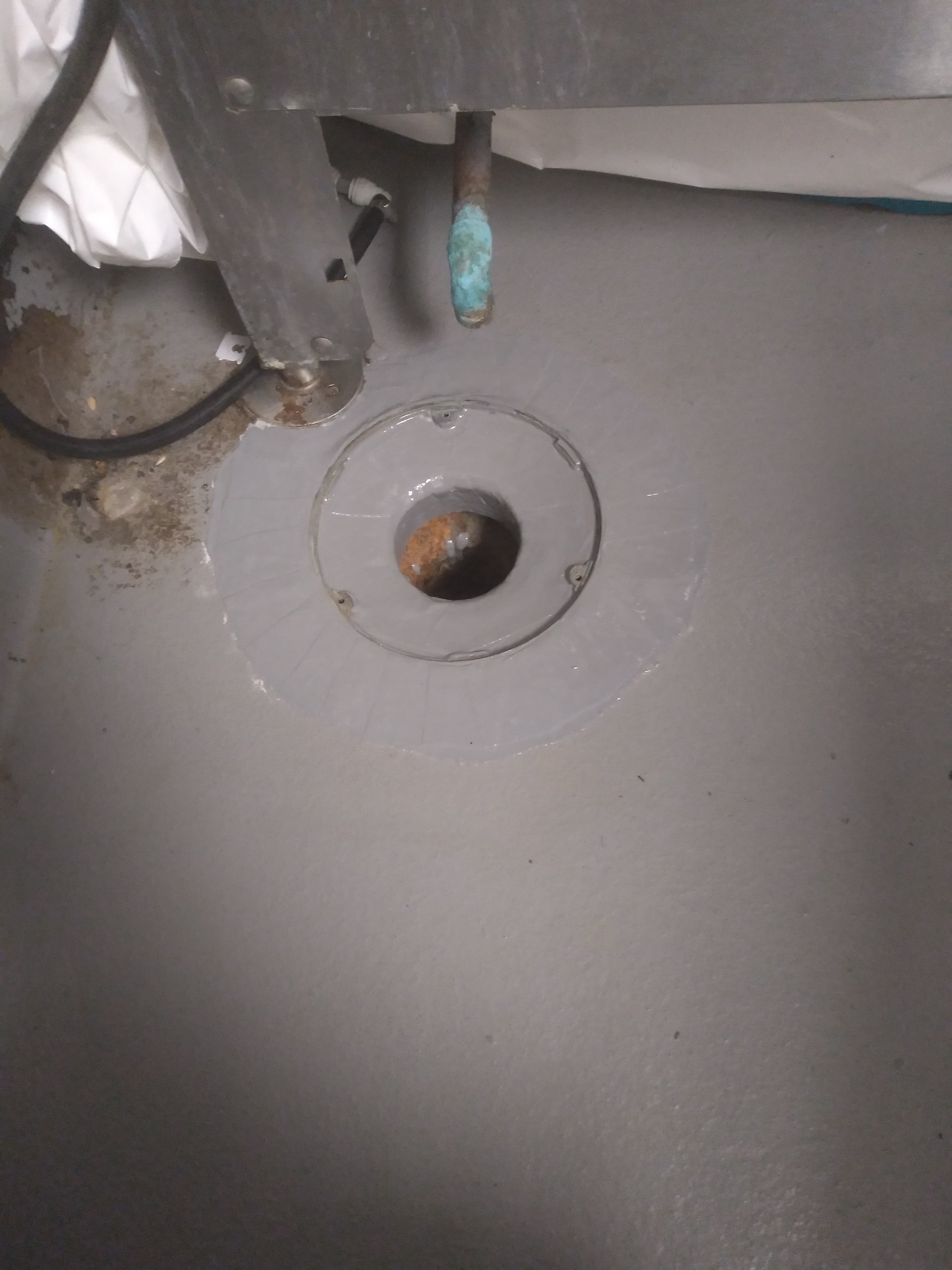 The cafeteria area that this drain was located in was difficult to access. The ice machine had to be moved along with a plumber to remove the piping for access. The work could only be completed outside of normal business hours because the heavy use of the area to feed the hospital and it's patients. The customer needed a quick curing surface tolerant repair method, that is flexible and corrosion resistant. The area could not be accessed from underneath, making the replacement of the drain pipe not a viable option.